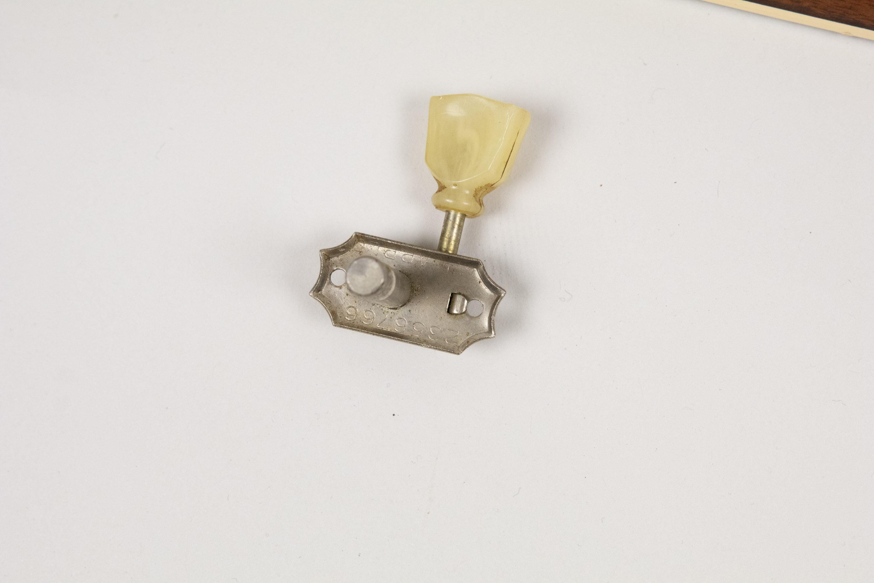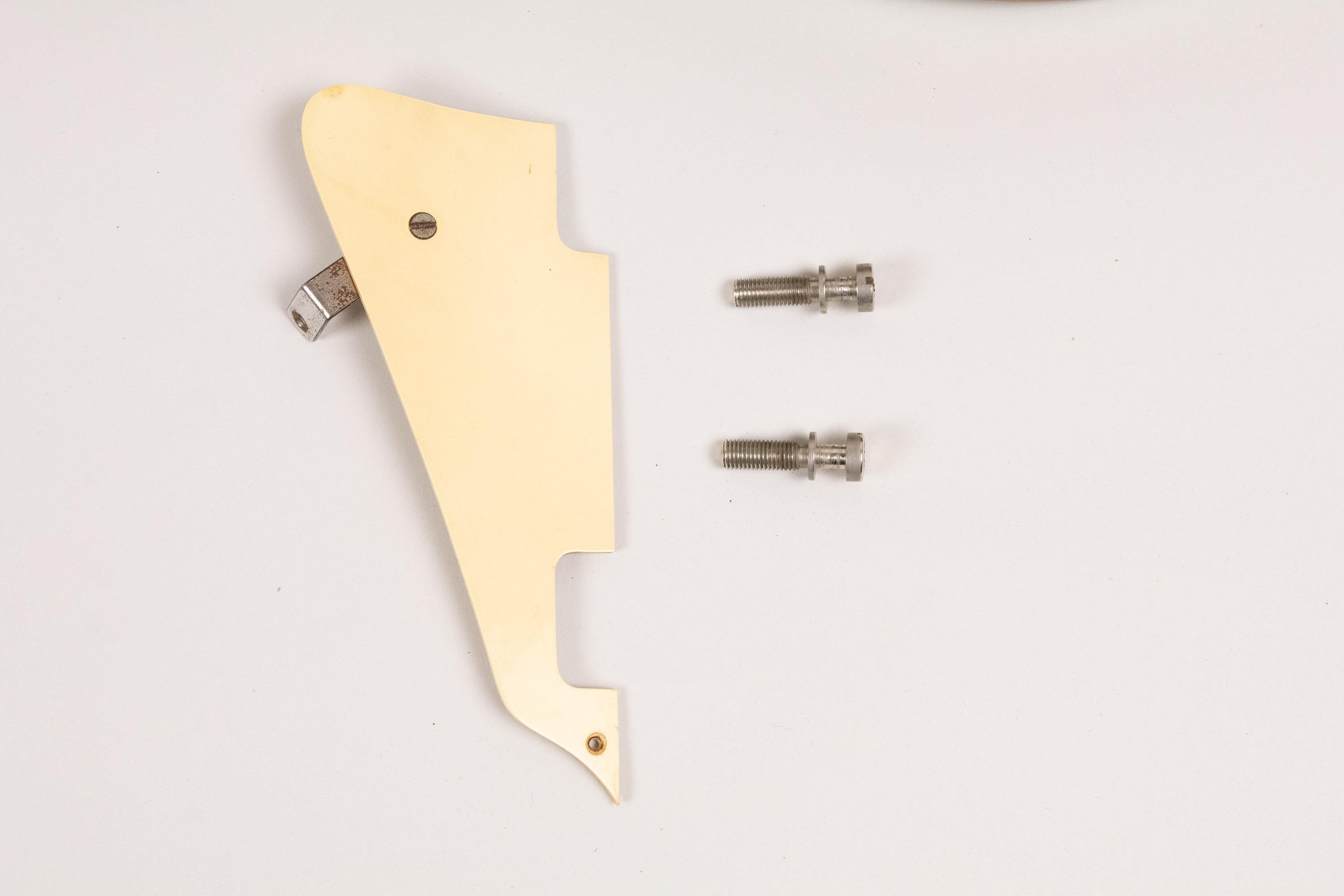 Let's get the relatively minor issues out of the way first. There have been other tuners on at some stage and post holes have been slightly enlarged but there are no extra screw holes. The pots are DiMarzio's, and there is evidence of different pickups being installed in the past - there are two extra holes in the neck cavity and a very small bit of wood chiseled out (see pics). Three extra screw holes are also in the bridge cavity. It has also had a refret and is fitted with a good quality repro switch tip.
