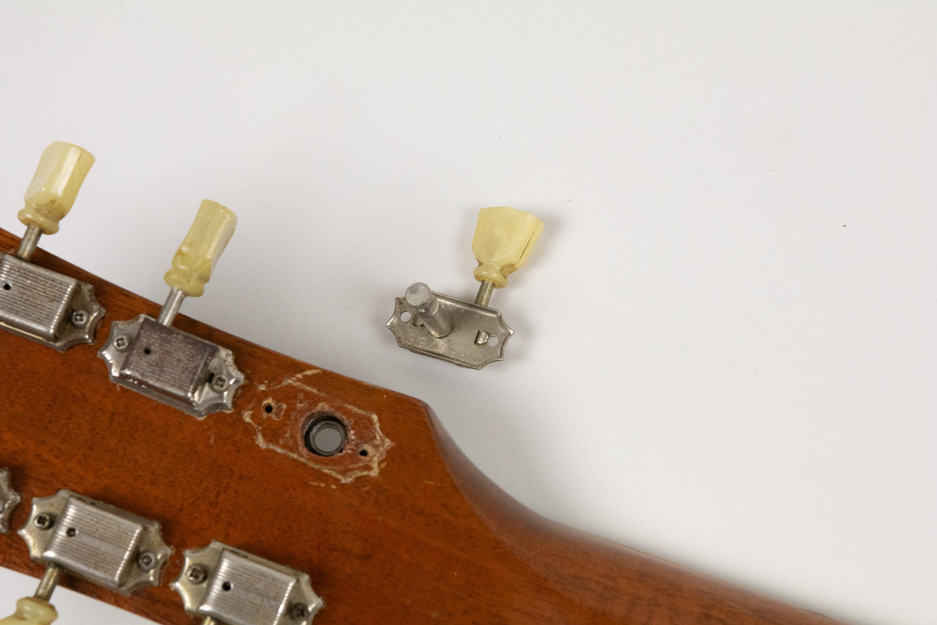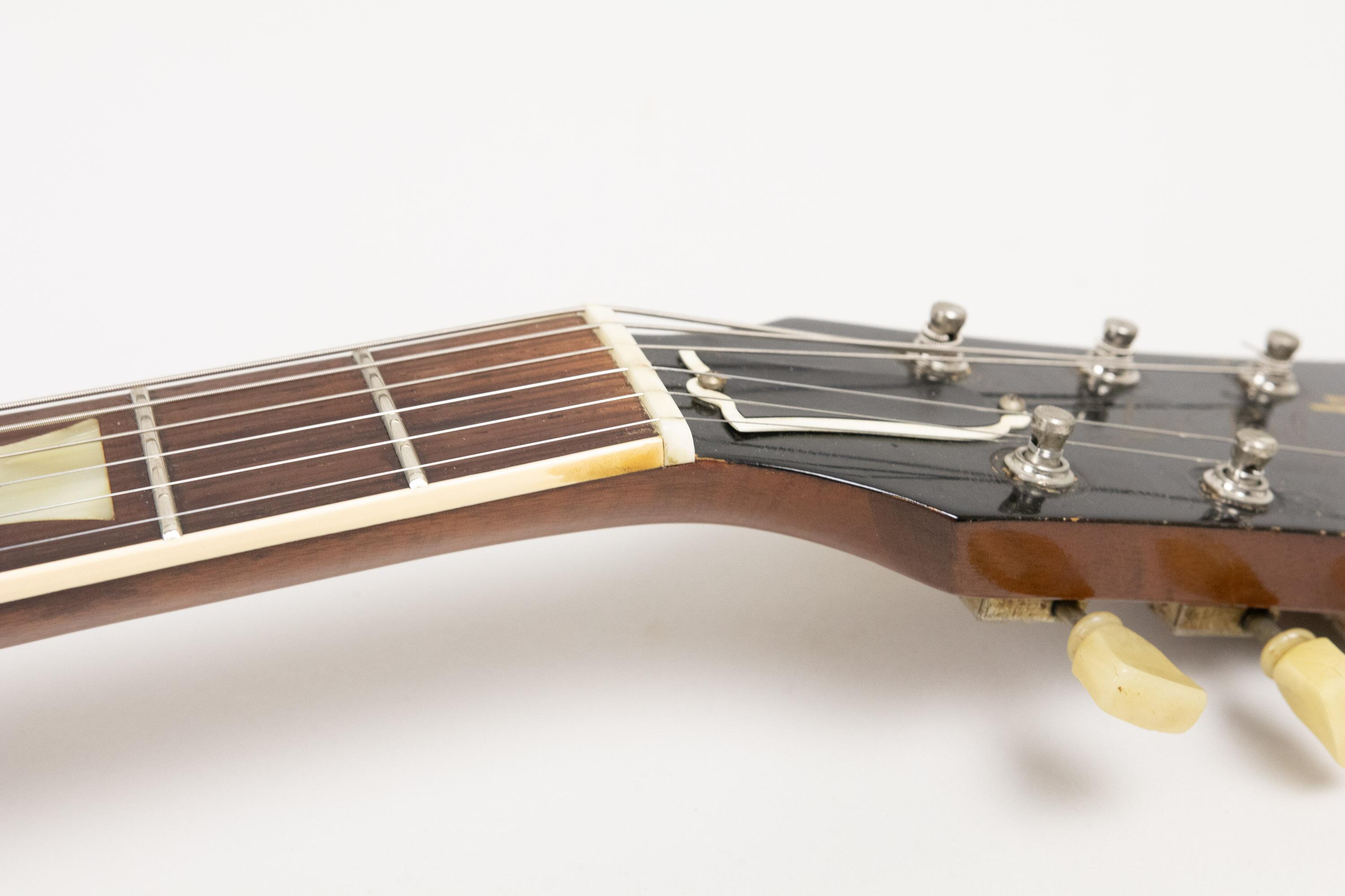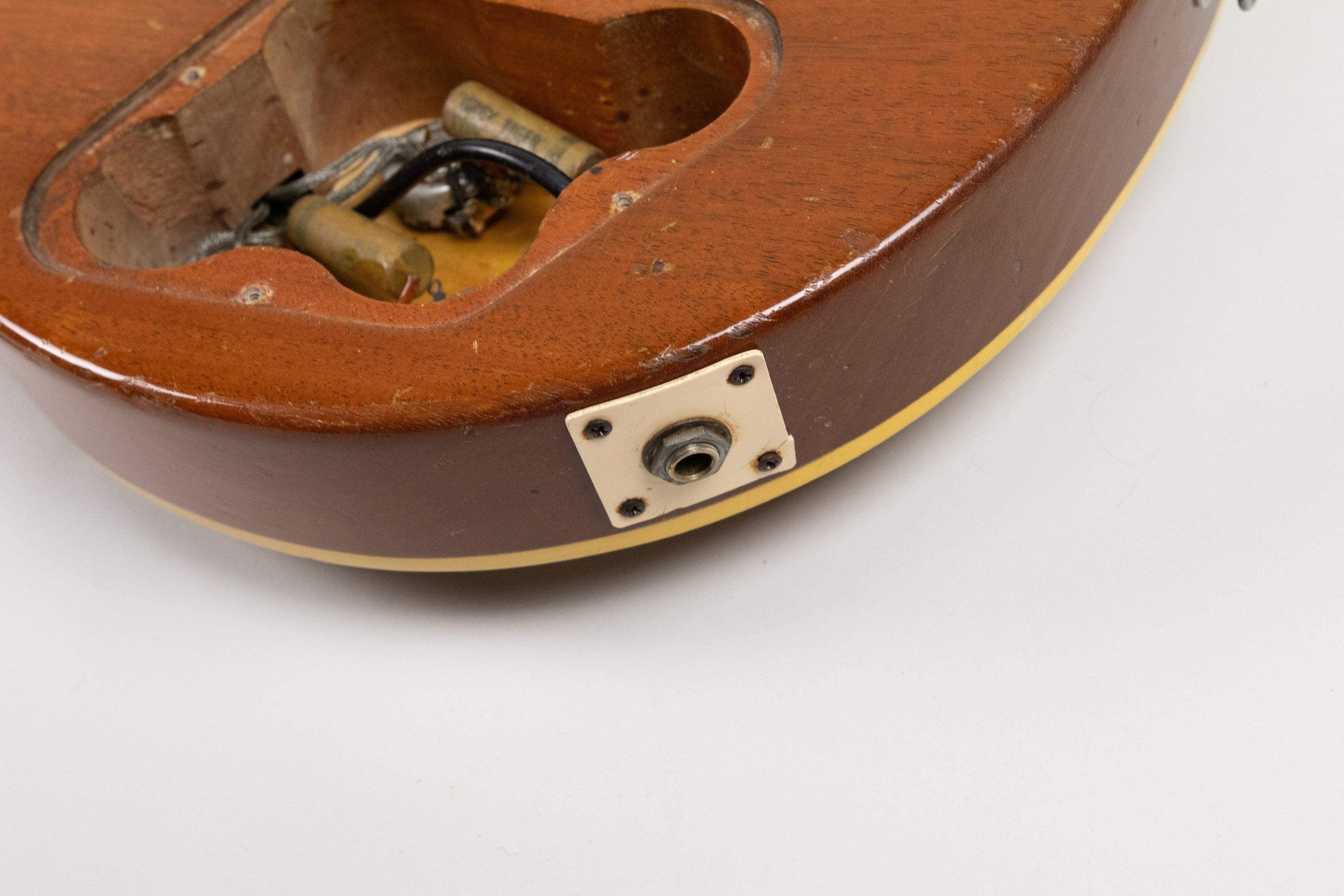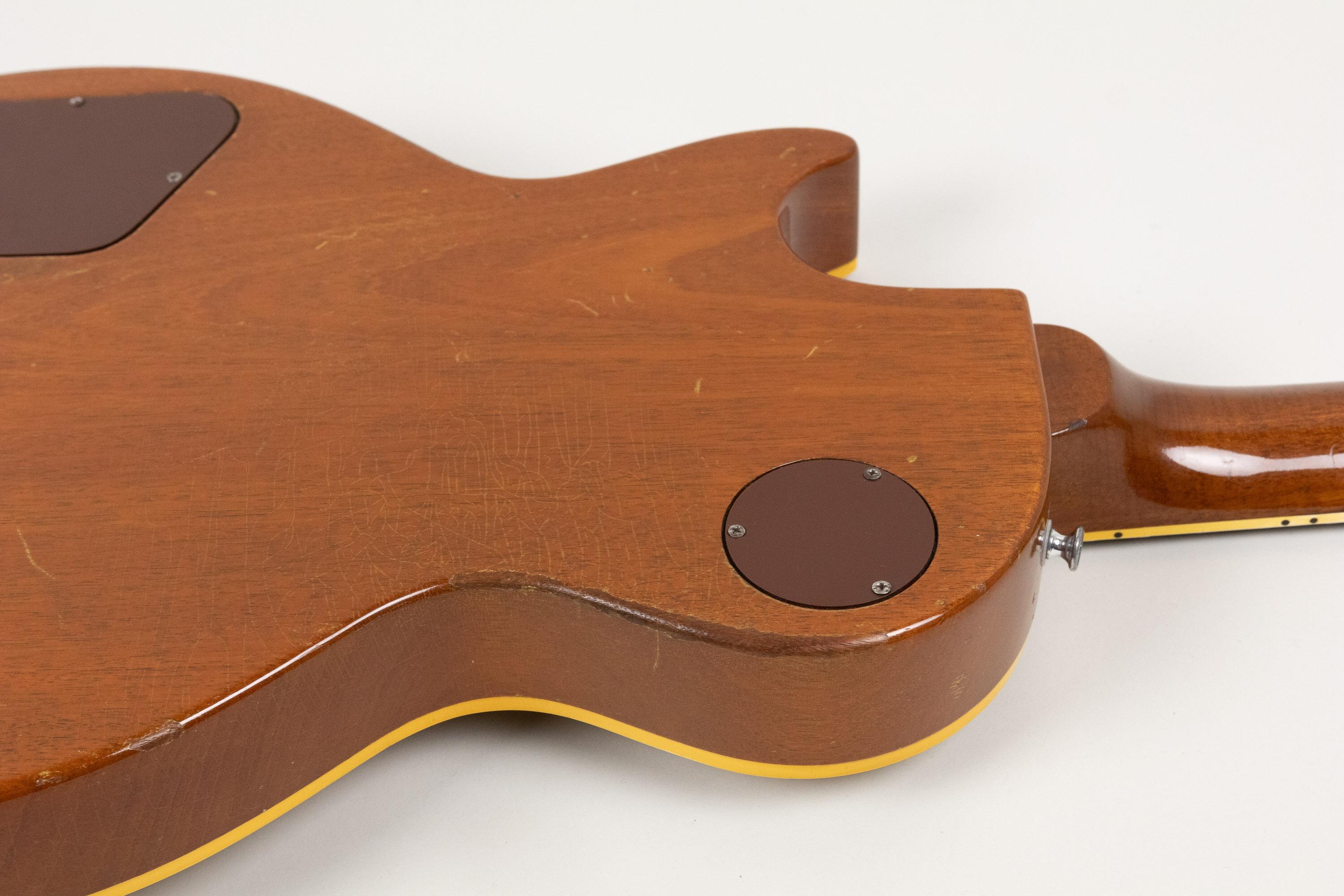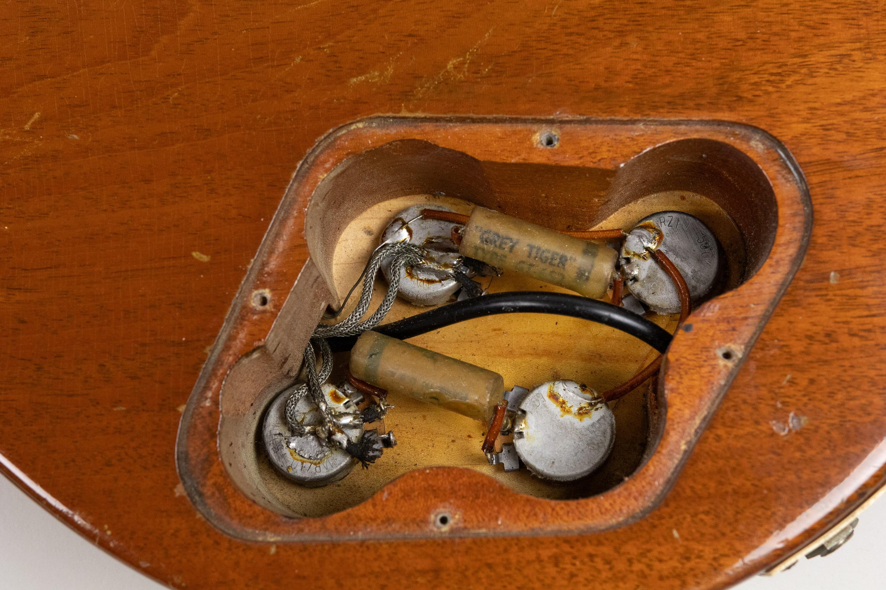 The neck has a classic ’50s chunky profile with not too much shoulder giving a slight V feel in the hand. Aided by a refret this guitar plays brilliantly well, the neck filling the hand comfortably and offering a superb playing experience.