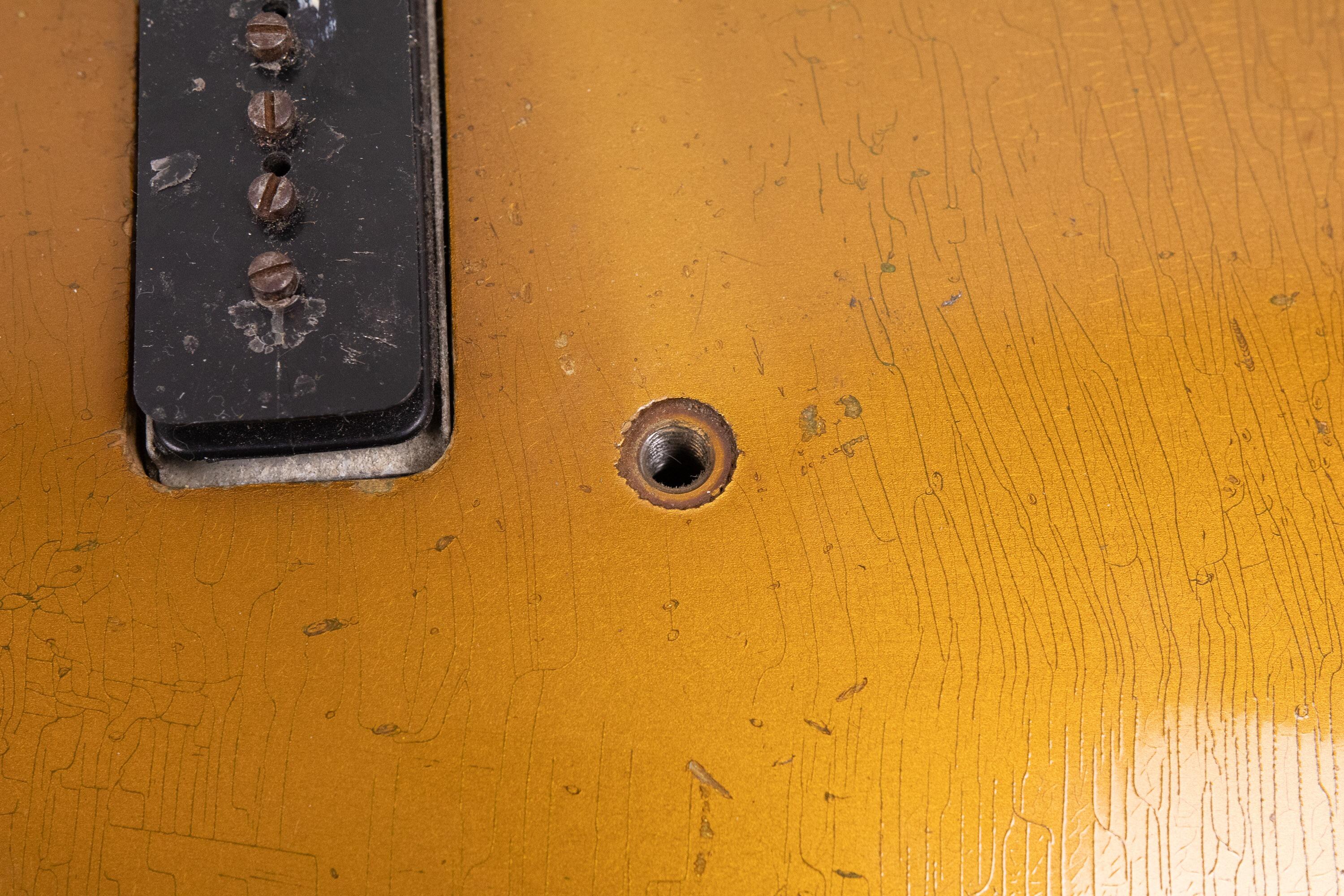 A stunning example of one of the most iconic electric guitars ever made. The vibrant gold finish has aged beautifully with remarkable lacquer checking and greening in the metal flake. The perfect amount of character and wear.