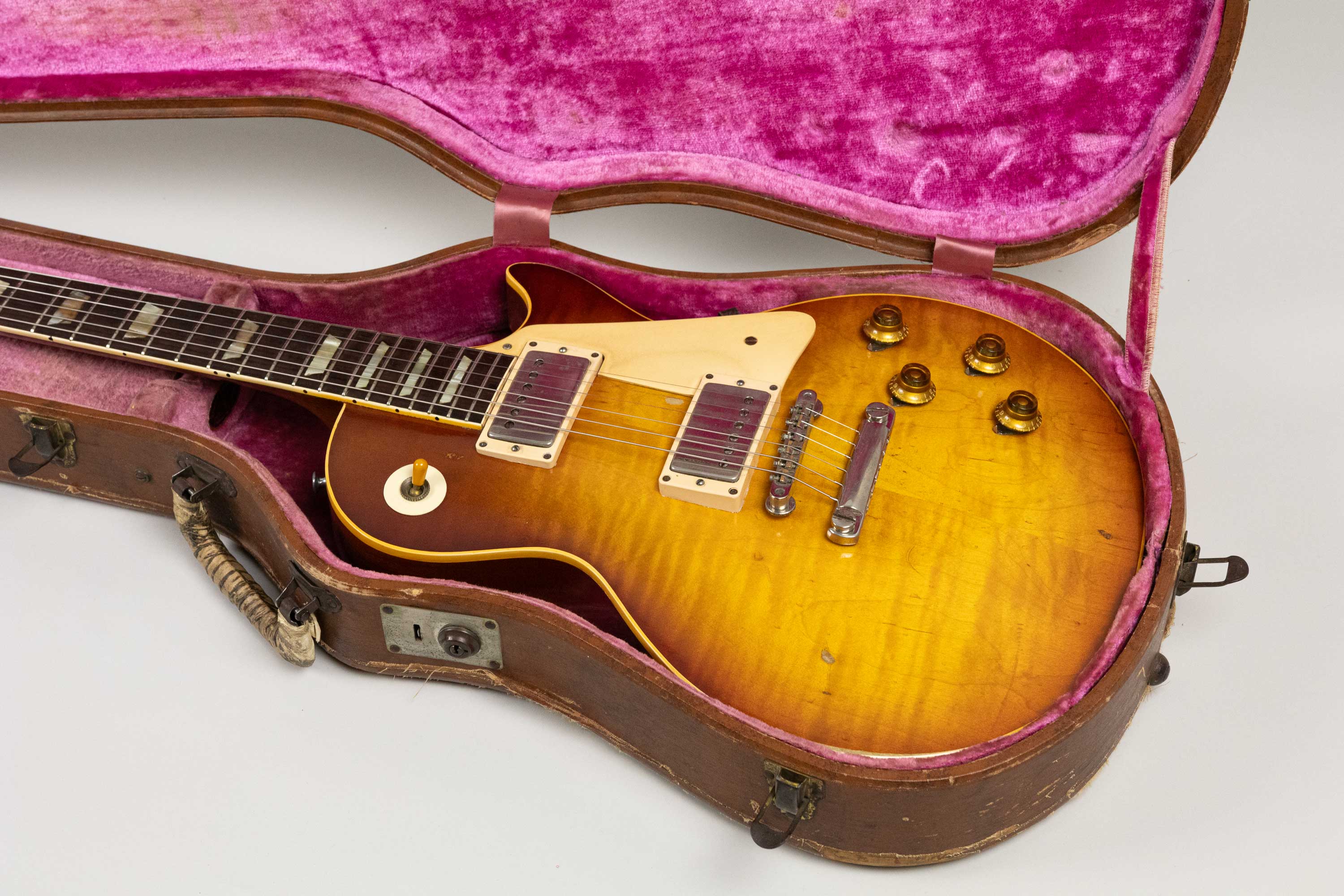 A cool example for the serious collector or the discerning musician. An original 1959 Burst with good flame, nice faded colour, patina, and the kind of real-world history that makes vintage guitars truly special. A rare chance to own the most iconic Gibson of all time!