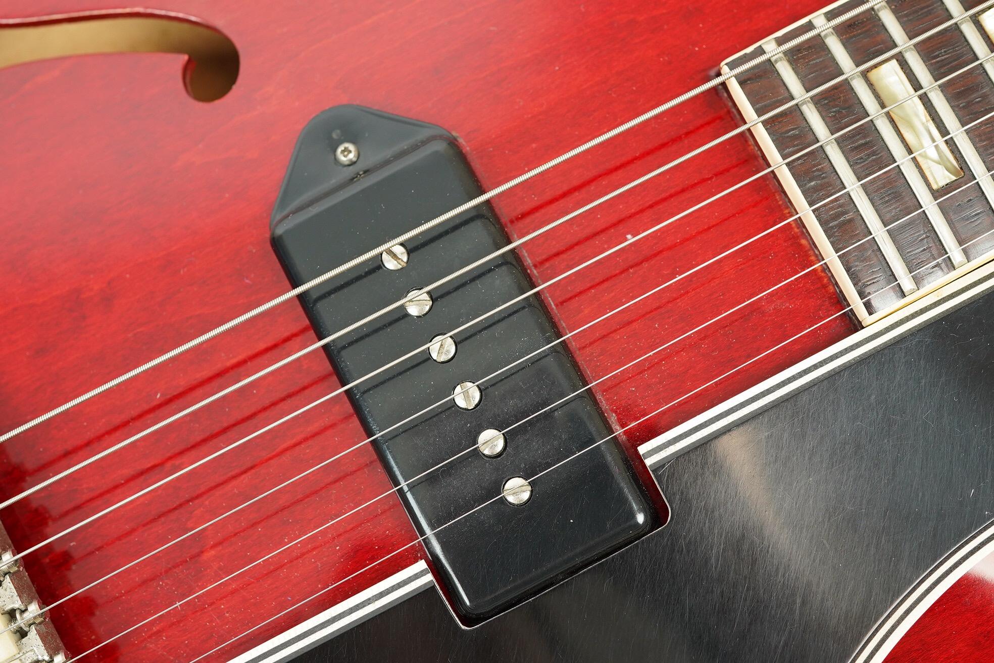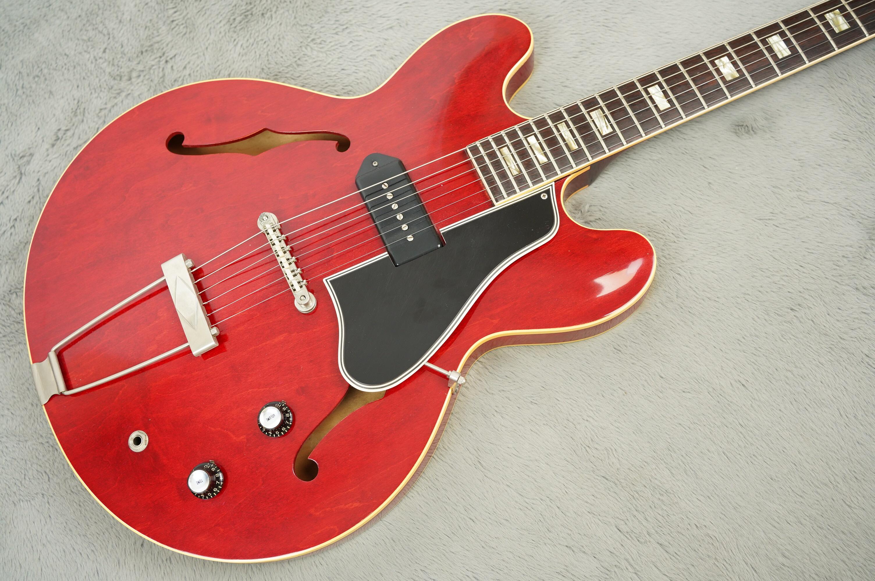 A super clean and undeniably cool 1962 Gibson ES-330 TC - one of the cleanest we've had in fact! With the pickup located in the middle these are voiced slightly different to the TD models. The absence of a pickup reduces magnetic pull on the strings and saves weight creating a resonant thinline model that has remained a bit of a sleeper on the vintage market. This is a cool transitional model with block inlays and black P90 cover before they switched to Nickel.