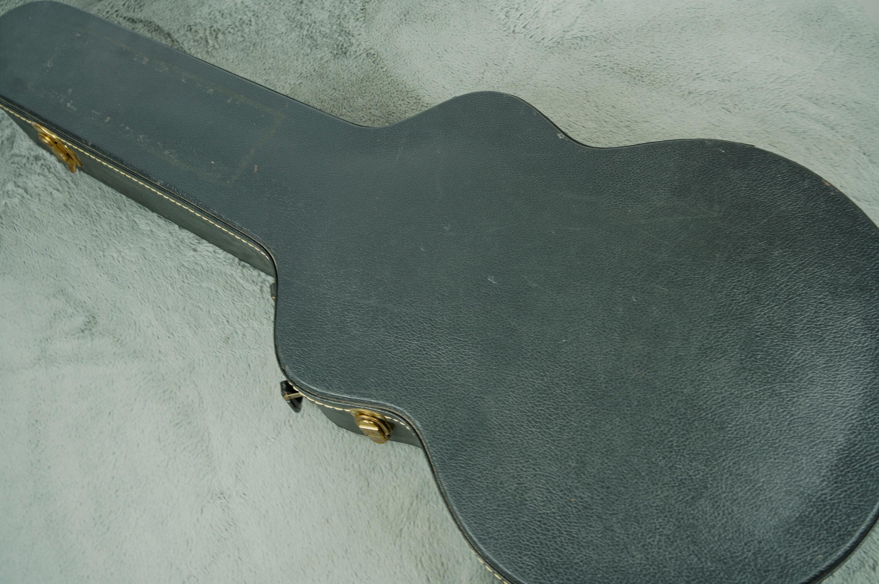 Pots and wiring appear correct, complete with 2 original black beauty capacitors. The dog ear P-90’s are original, each having a strong output and balance between them. The tone has punch and warmth with a nice thickness to the sound. Overall this is one of the nicer sounding examples we’ve had, and with a couple of changes to keep the price down this is an excellent buy! Comes with a non-original hard case.
