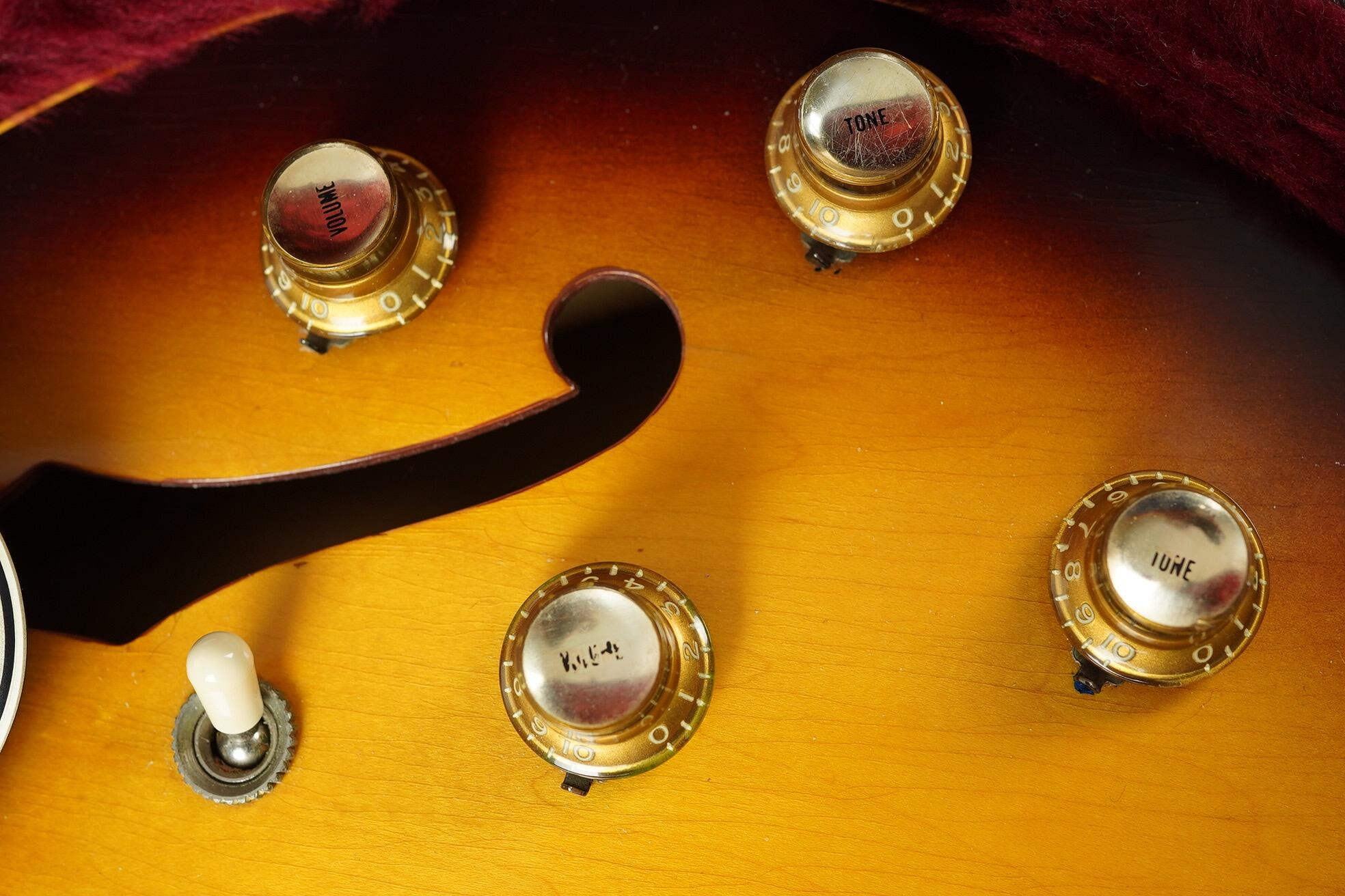 Successor to the ES-225, the ES-330 was introduced in 1959 - a model that bridged the gap between the new centre block guitars and Gibson’s classic archtops of the previous decades. The 17-fret neck to body join and lack of centre block made for a lightweight more comfortable feeling guitar for many, and the P90 pickups and fully hollow body gave a different tonal character that lent itself well to jazz and blues as demonstrated perfectly by the likes of Grant Green and BB King.