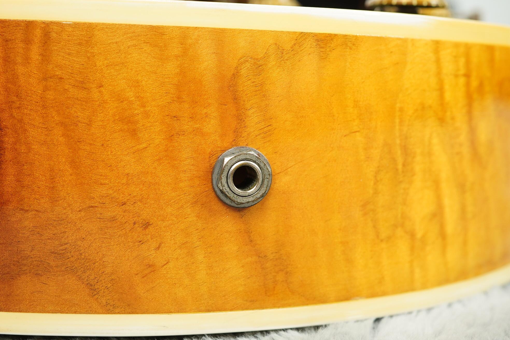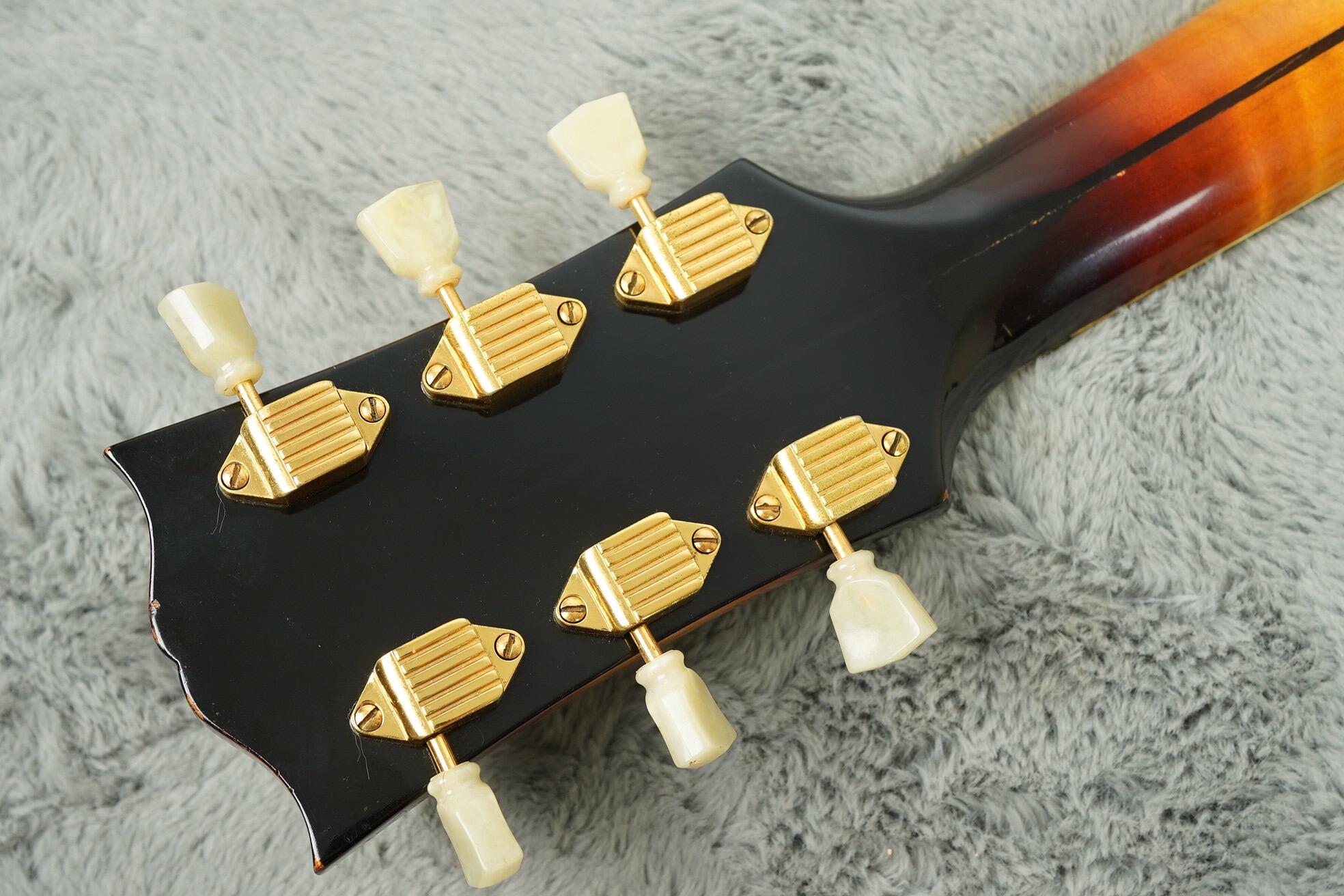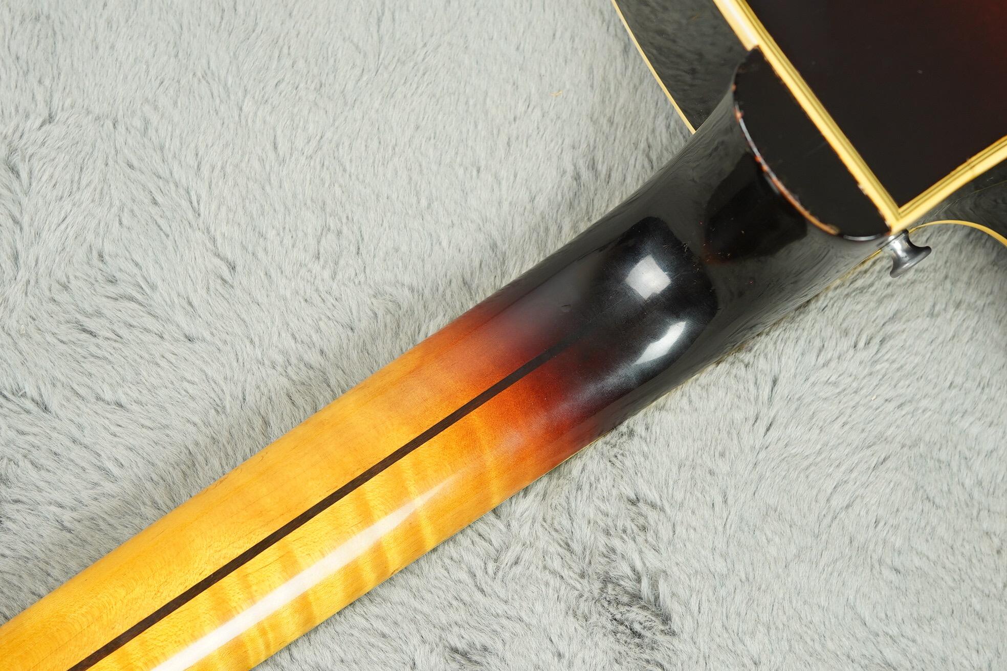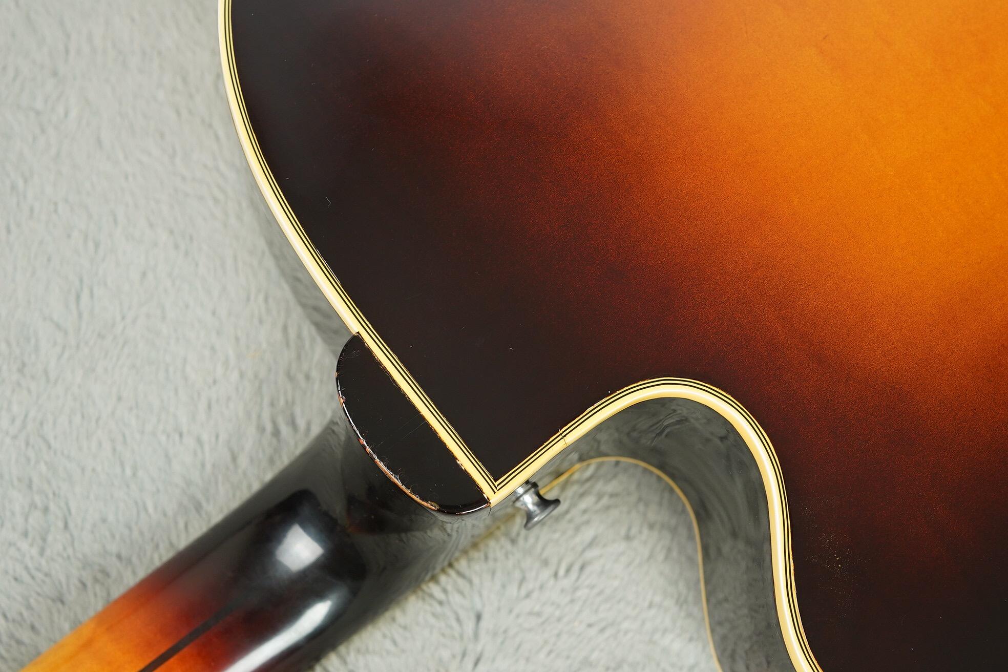 Beautiful, almost un-faded tobacco sunburst finish has some mild flame on it, especially on the back and neck. All three P-90’s are real strong and sound great.. Basically, with the combination of a volume and tone control for each pickup and with the 4 way Tele type switch in ‘ALL’ position you can get any tone you like and mix it to your heart's content on the 6 knobs that adorn this lovely ES-5.