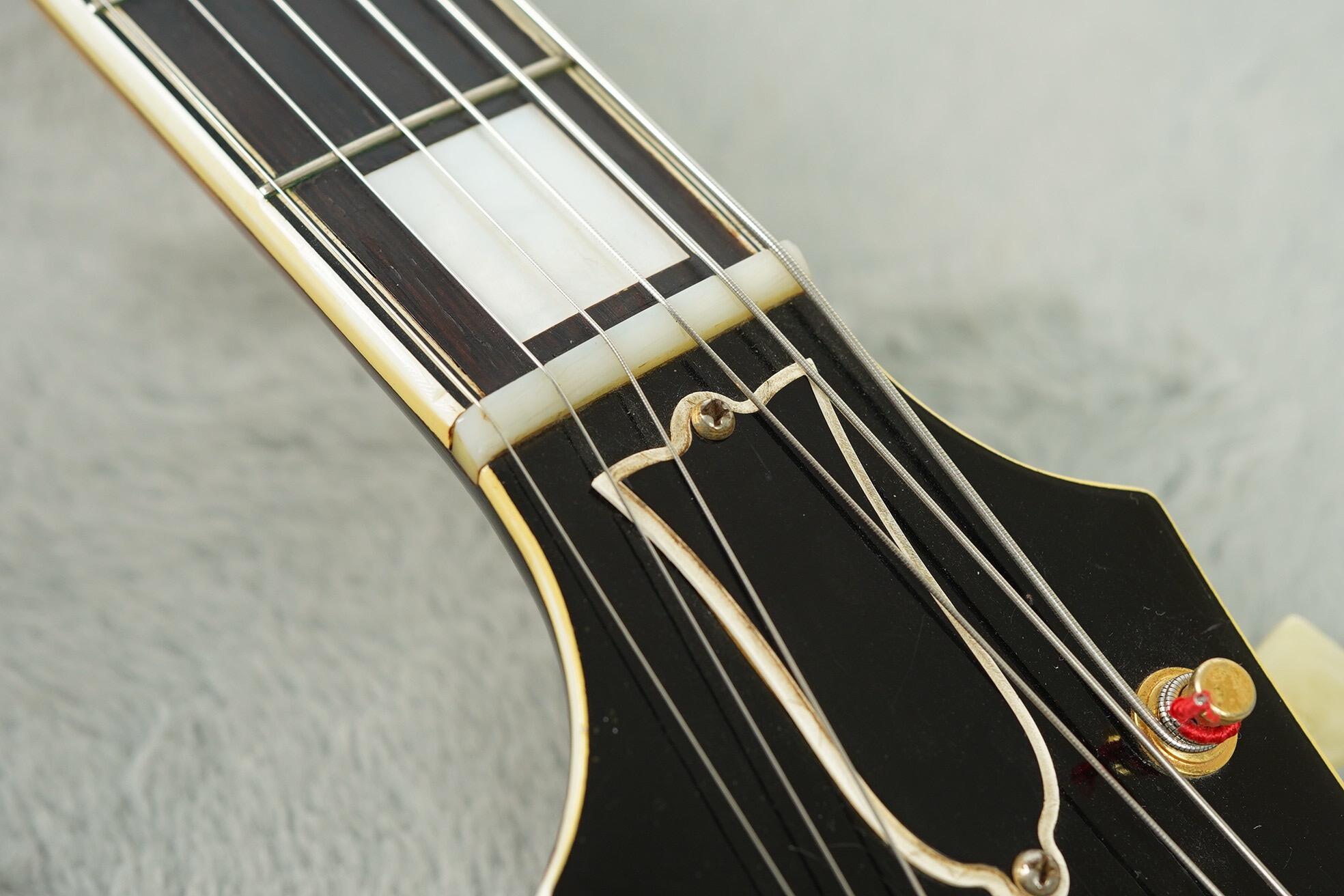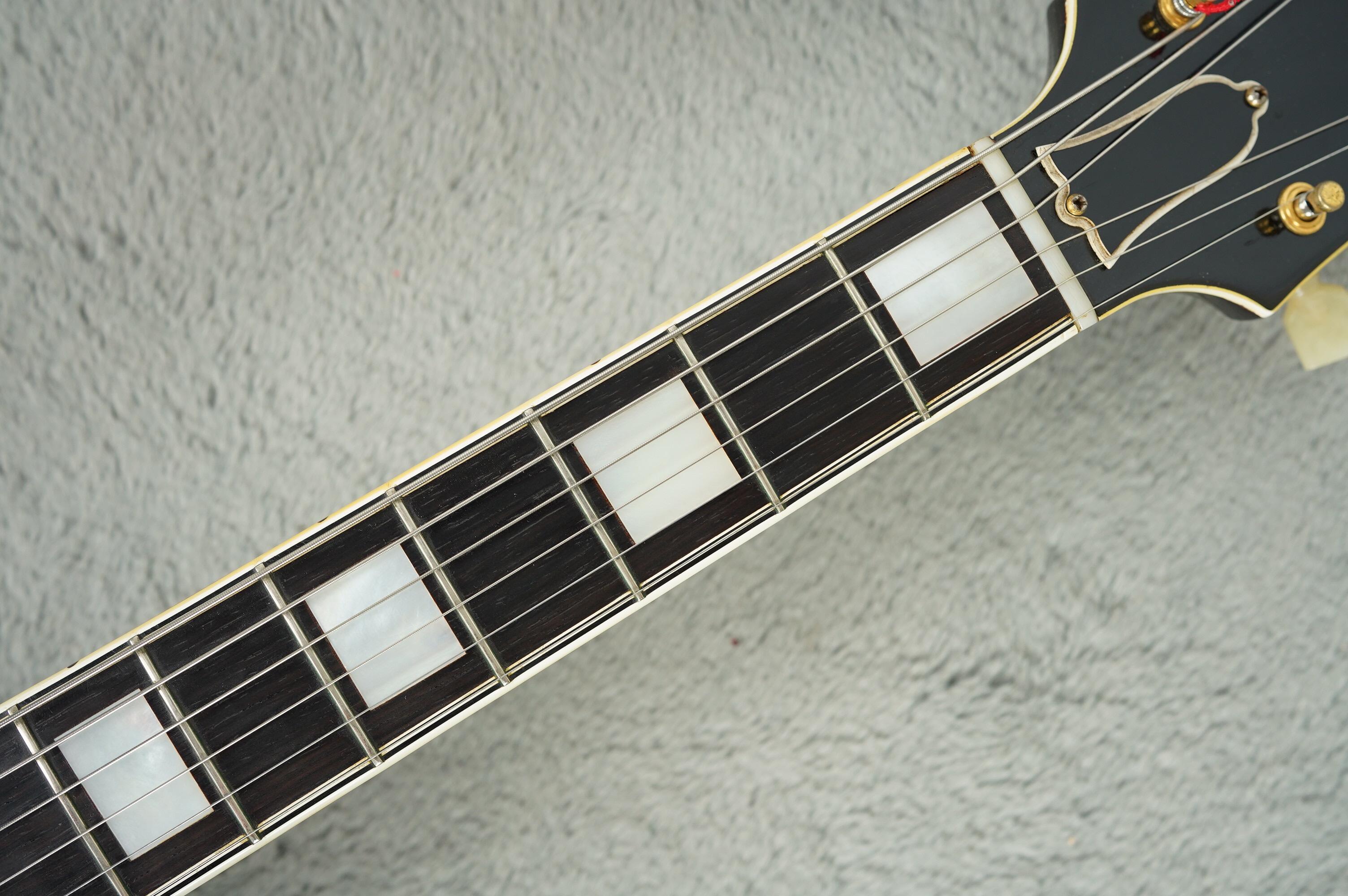 Original frets have very little wear no doubt aided and assisted by a lifetime of jazz type flat wounds being fitted and it has a nice, low action with good playability all across and up and down the fingerboard. There is some rutting on the fingerboard but not too much.