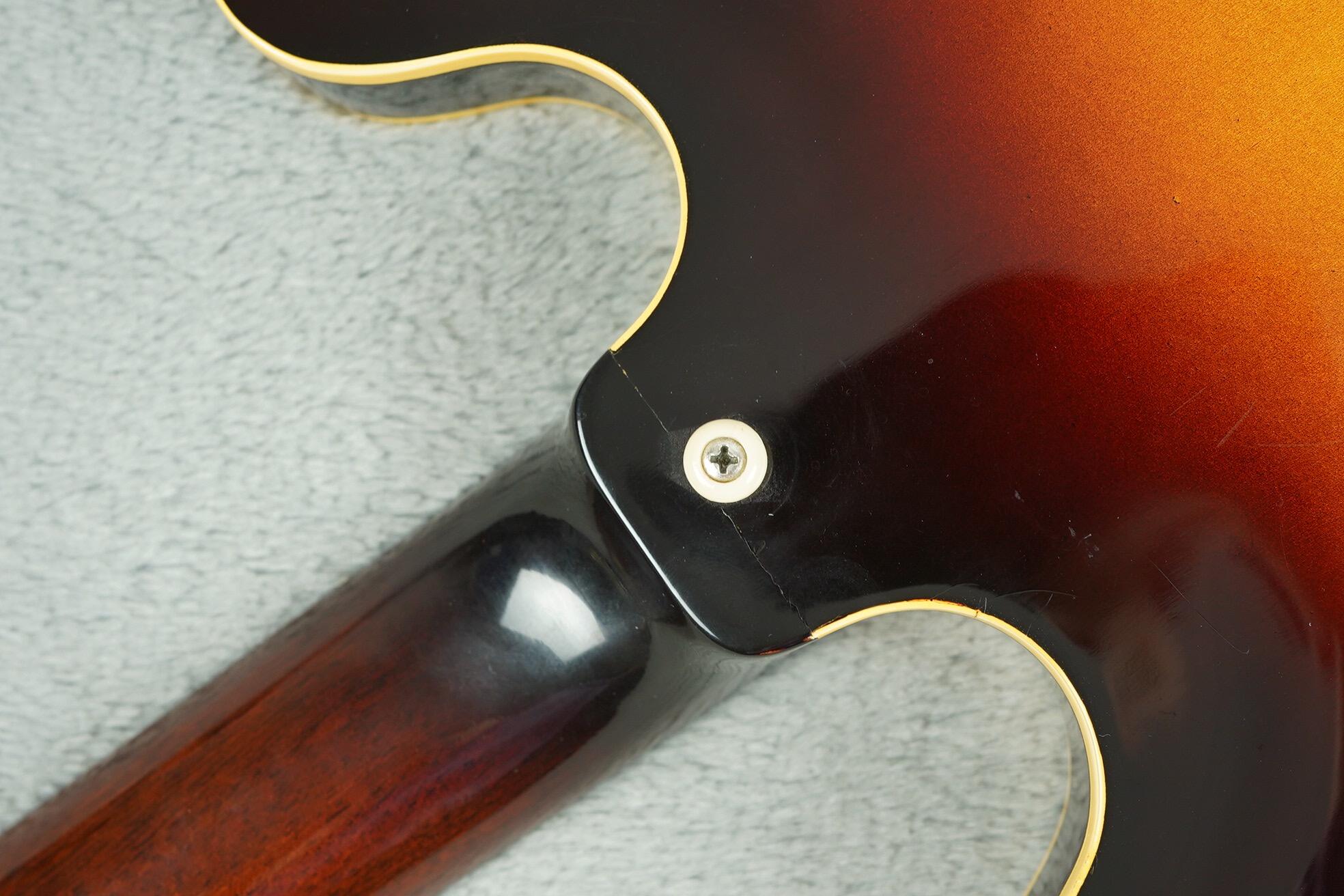 There is none of the usual cracking around the jack socket on the first layer of ply, just a small amount of checking in that area. Rest of the guitar has zero checking and still retains that shiny new look. Almost time capsule in appearance.