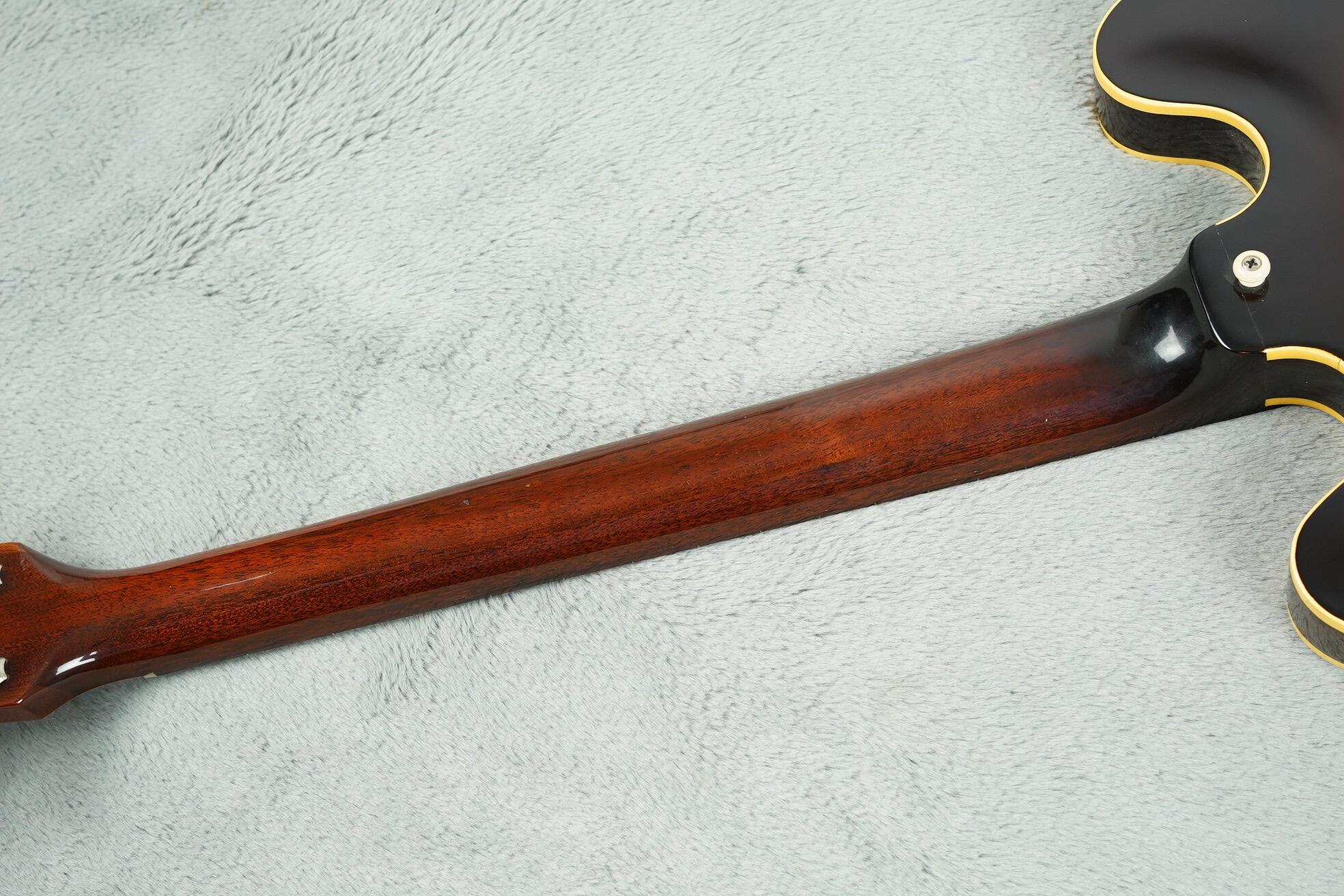 These first generation, early ES-335’s are really something quite special. The combination of the thin top and the PAF pickups is pretty magical and together with a beautiful round, chunky-ish neck and unbound fingerboard it really is one guitar to consider being at the top of your hit list and this is probably the nicest one you will see.
