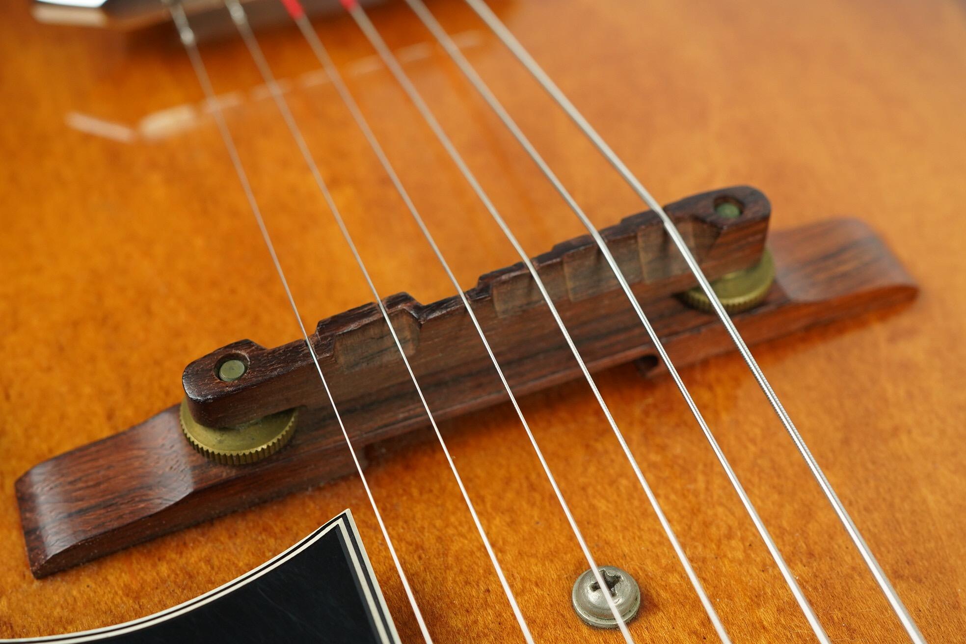 As you can see from the photos, the guitar itself is in fantastic shape. The top, back and sides show little signs of wear and the lacquer is gorgeously glossy. The finish has faded somewhat but this doesn’t detract from the overall look of the guitar.