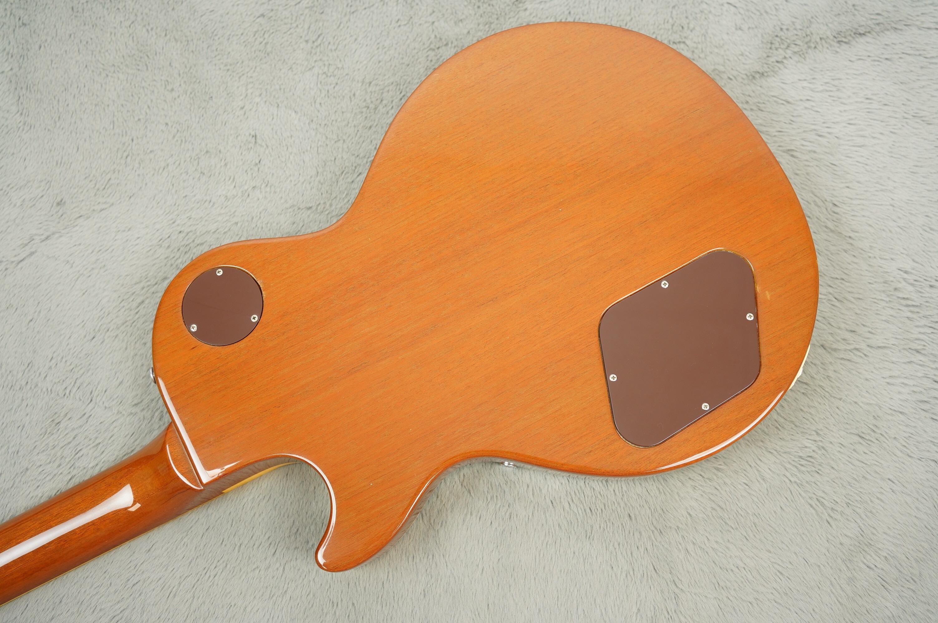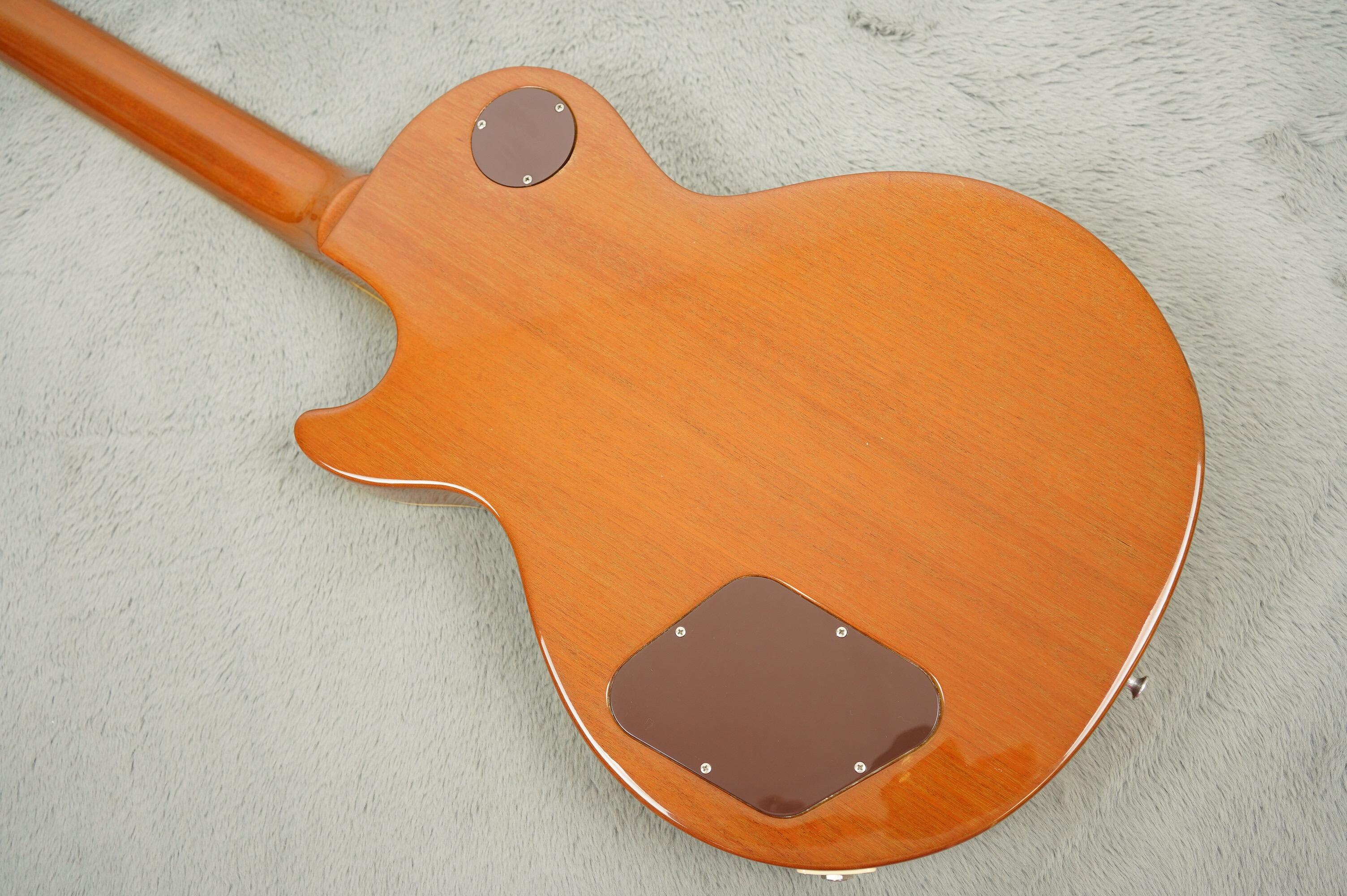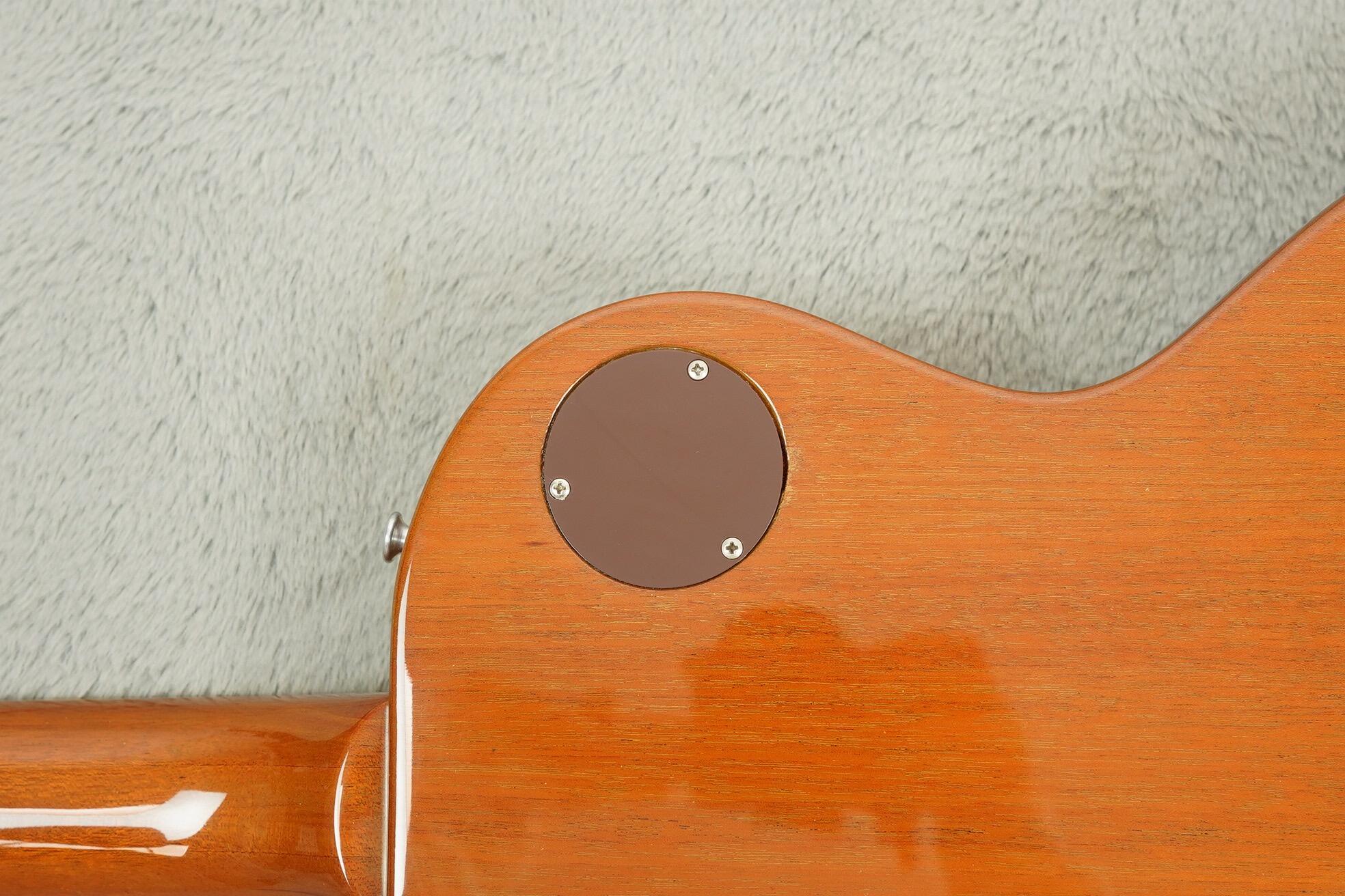 It has all the classic features of the period: Mahogany/Maple sandwich body, three-piece Mahogany neck with small volute, “Made in USA” stamp on the back of the headstock. The mini humbuckers deliver a bright, focused take on classic Les Paul humbucker tone—crisp, clear and tight in the low end, with a lovely midrange push that works really well clean with superb cut and directness when driven.