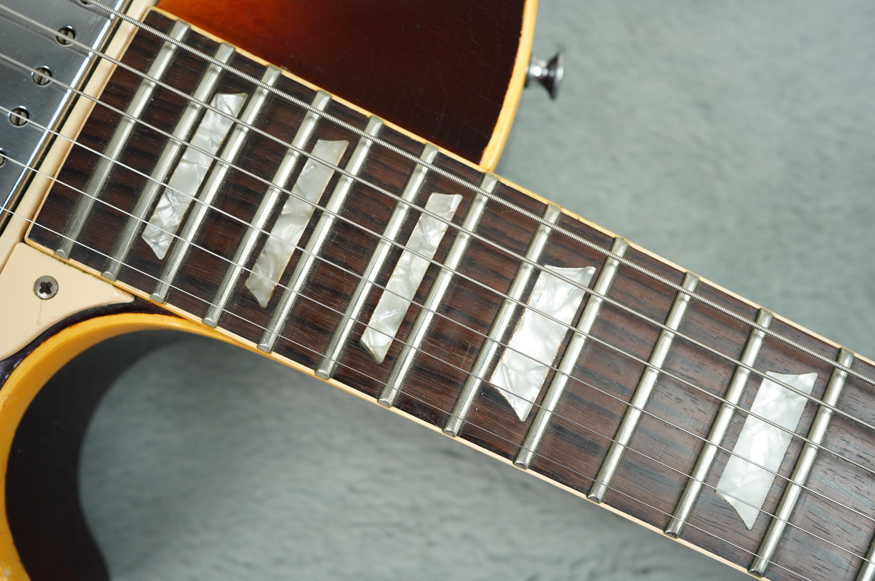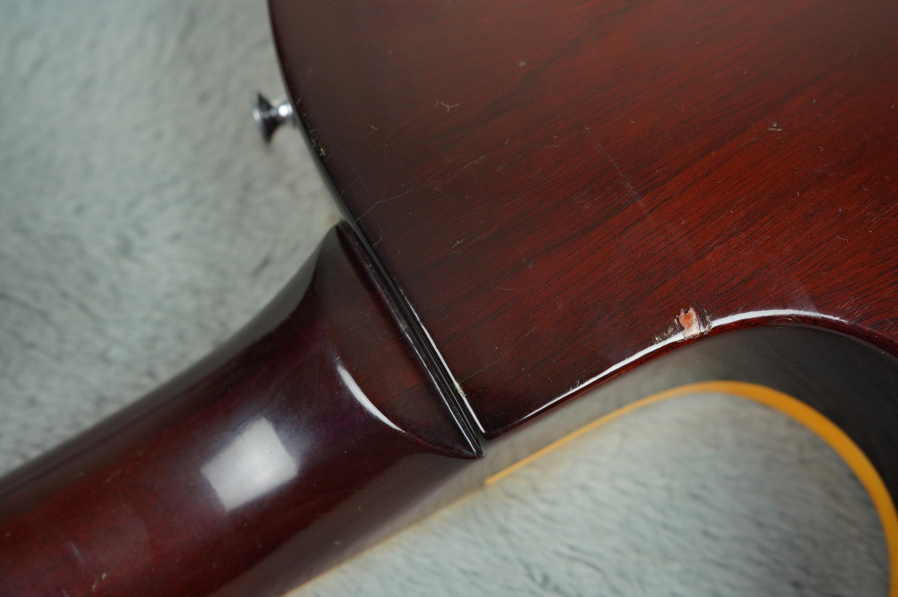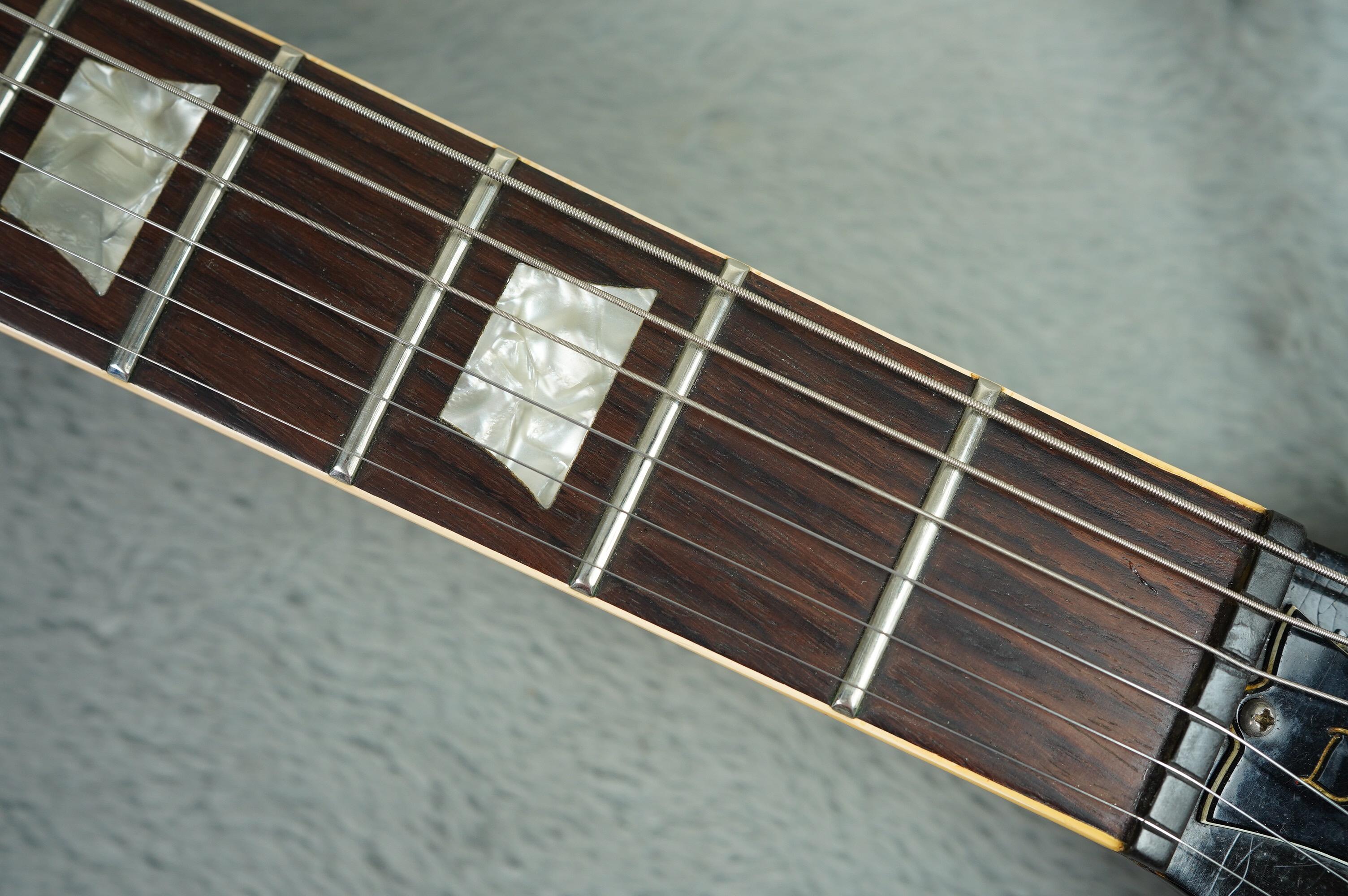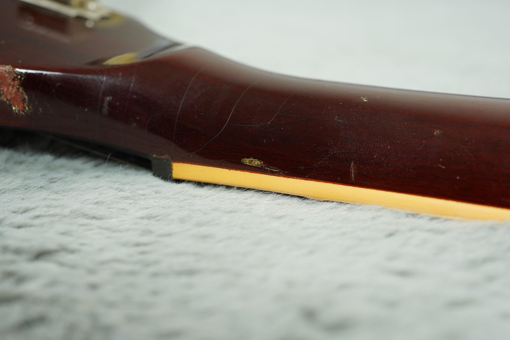 The three piece mahogany neck (soon to be changed to maple in 1975) shows very little signs of wear. The fretboard is in great shape having been refretted and a new nut fitted. The headstock, in the same way as the body, has a few marks.