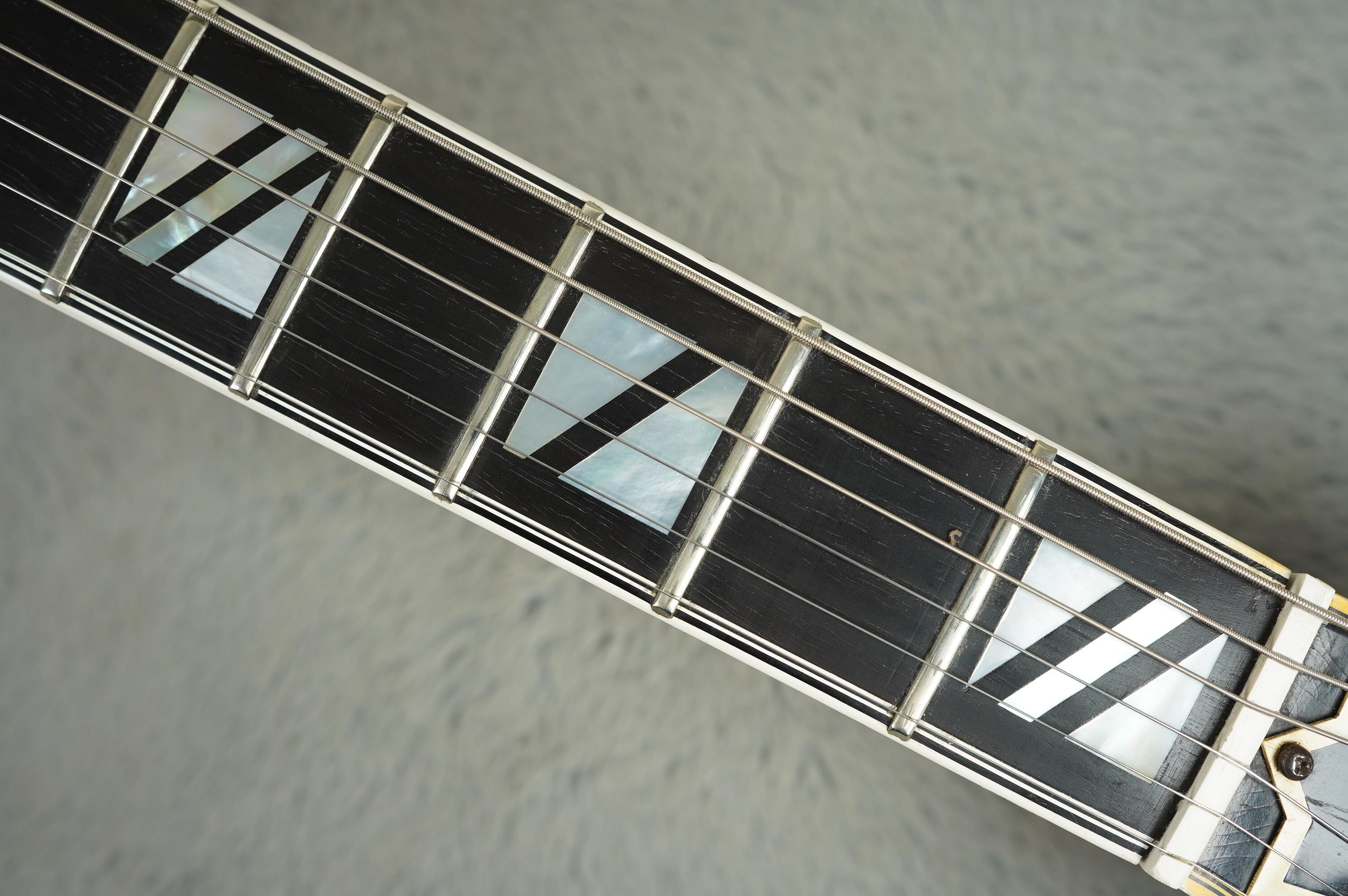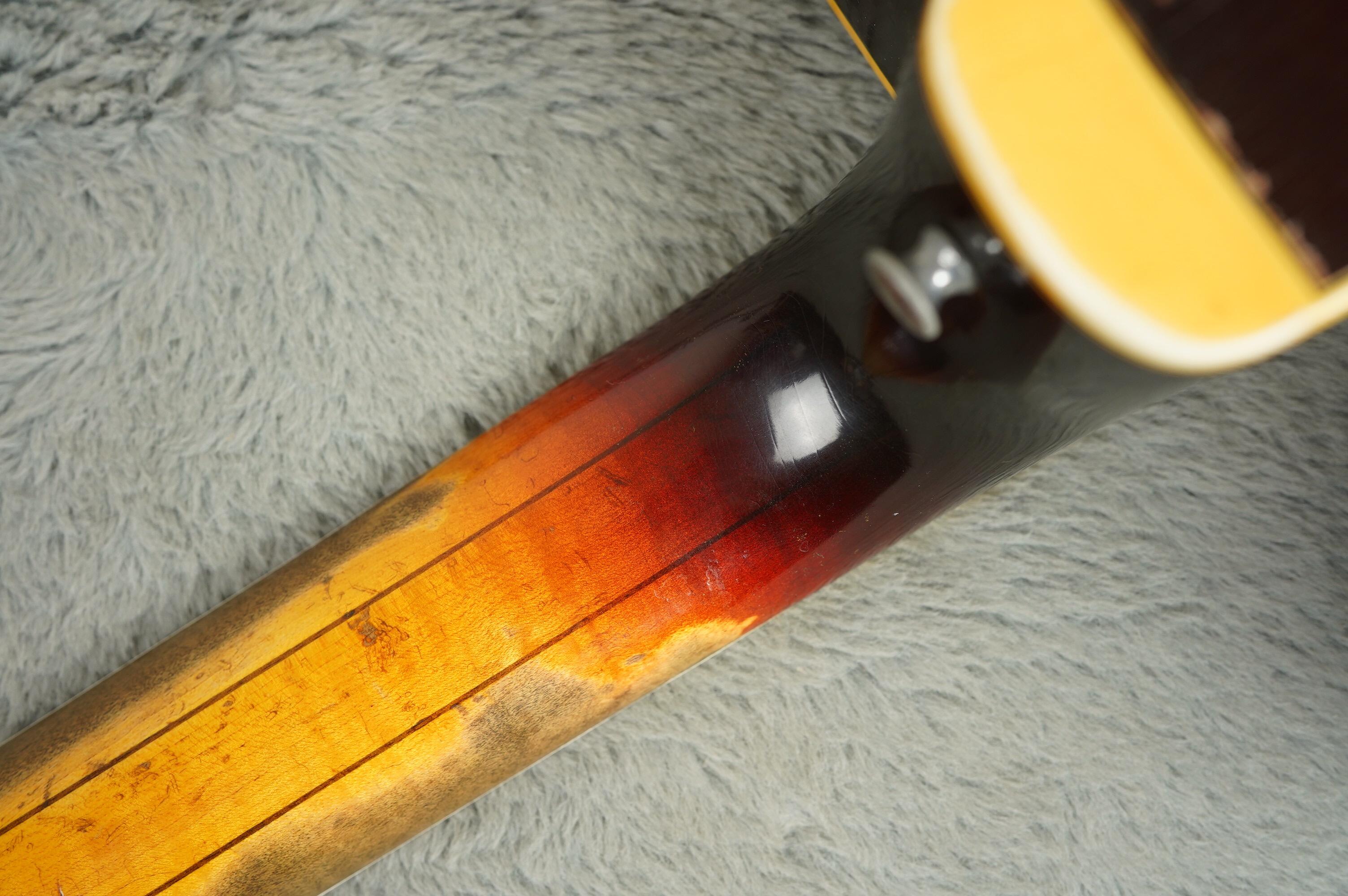 The neck is worn, the finish has gone along both sides. The ebony fretboard is in excellent condition and the original frets have plenty of life left in them. The headstock and tuners are in good condition though the plating has worn as is to be expected.