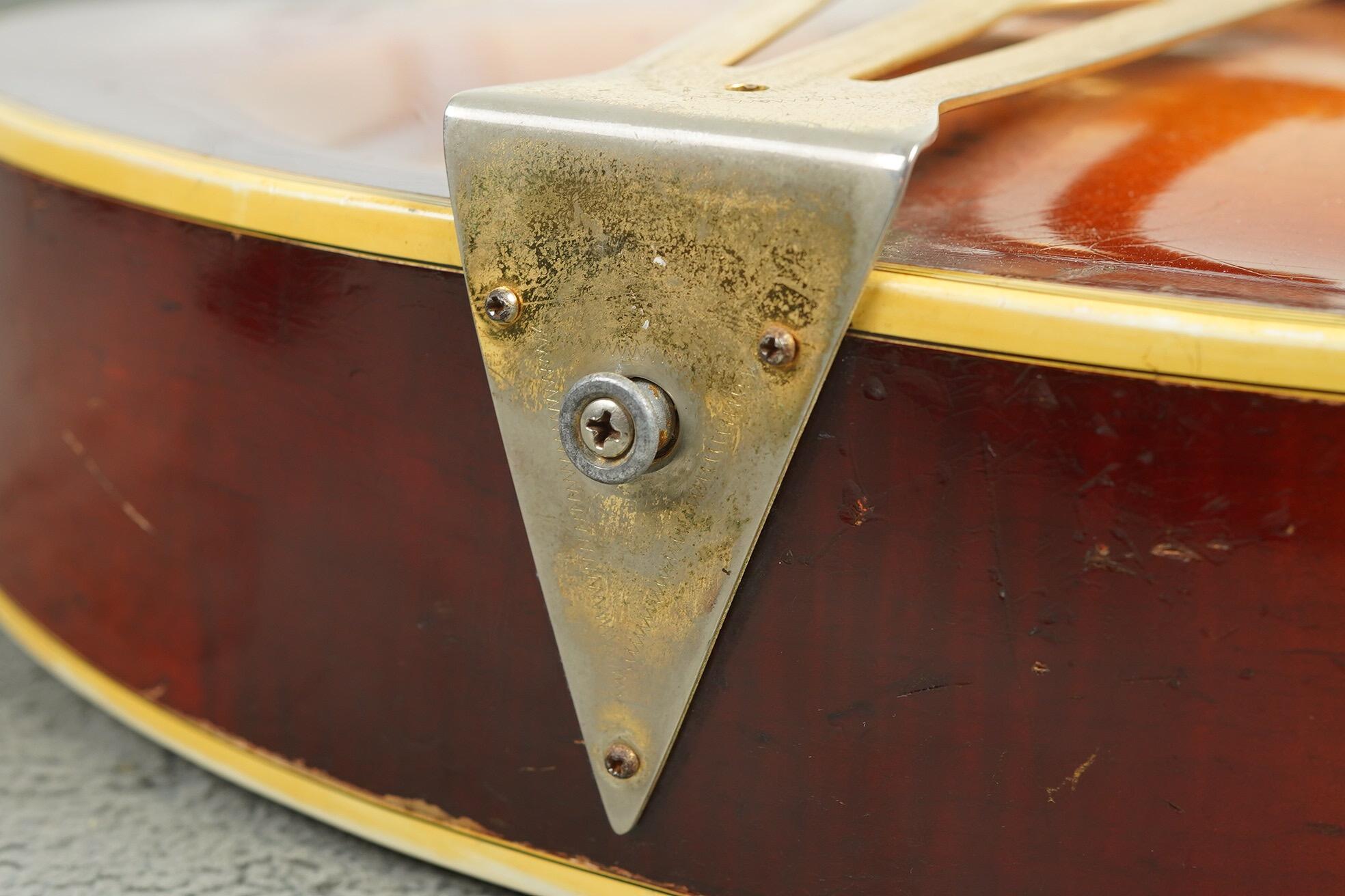This rare guitar is in great condition. The sunburst finish adds a classy touch to the carved spruce top and back. The finish has crazed and it's certainly seen its fair share of use. Thankfully there is no sign of breaks or excessive damage.