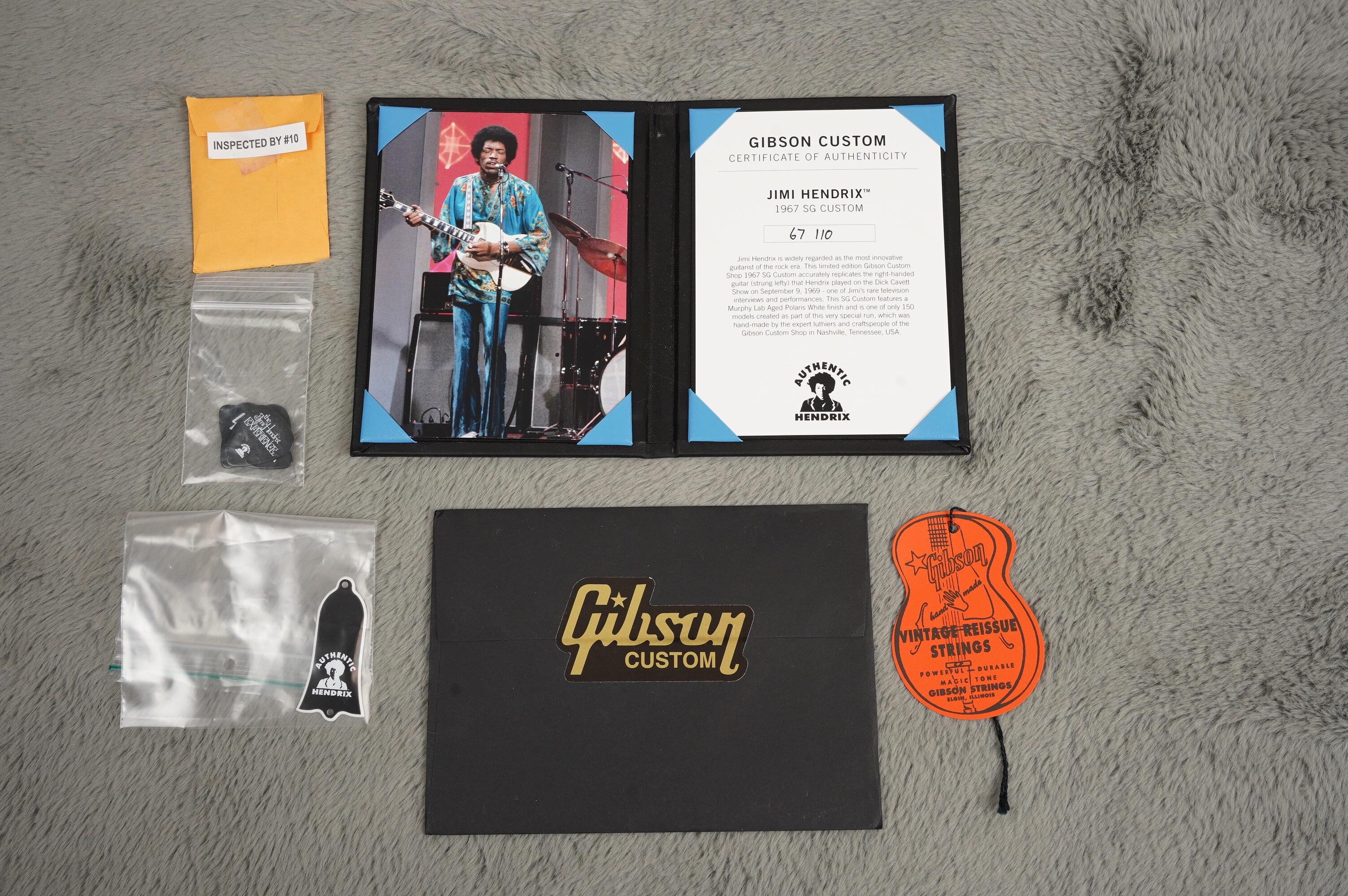 A Custom Shop masterpiece built to celebrate the 1967 “batwing” SG Custom that Hendrix played on The Dick Cavett Show on September 9, 1969 - one of Jimi's rare television interviews and performances. This is number 110 of 150 made - a superb, collector grade example complete with case, certificate and tags.