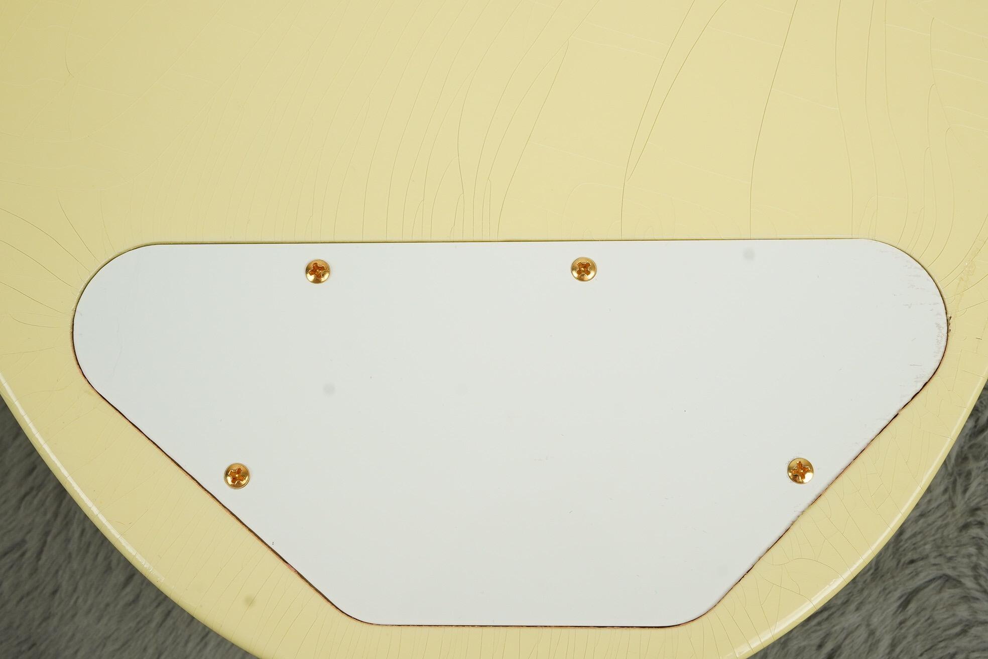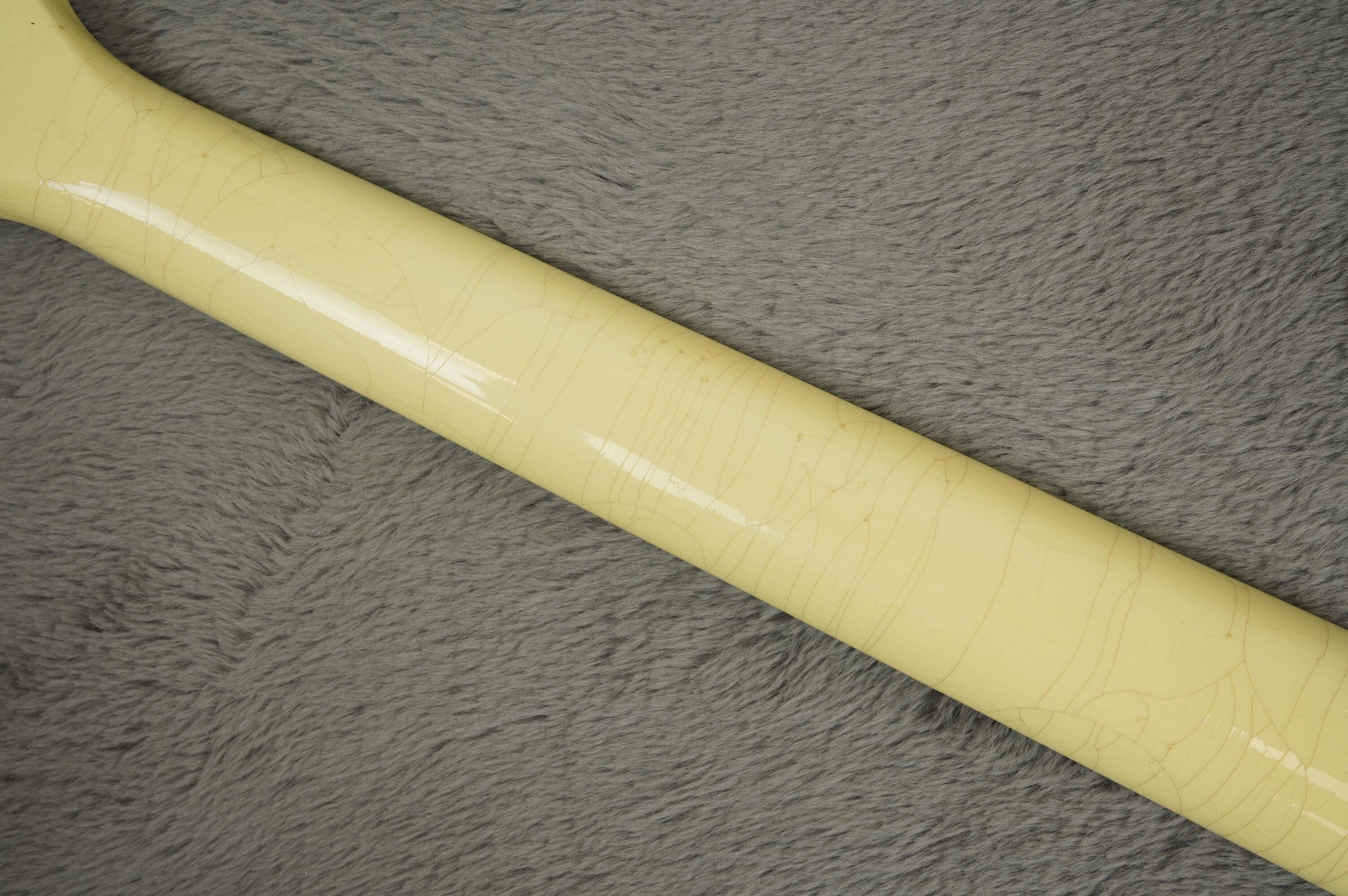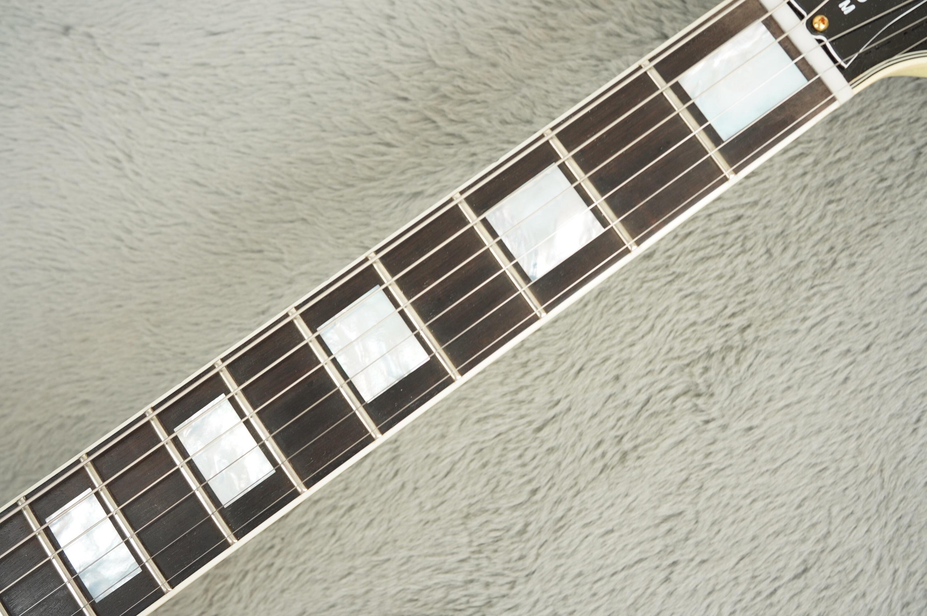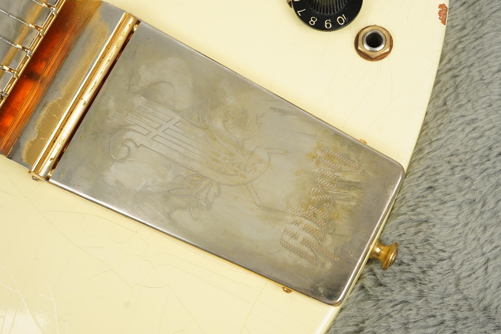 The Murphy Lab-aged Polaris White nitro-cellulose finish is stunning: subtle yellowing, lacquer checking and dings/wear inspired by Hendrix's original. The Mahogany neck has Gibson's 60s SlimTaper profile, long tenon, and a bound ebony fingerboard with Custom block inlays. The bound headstock sports the Custom's split diamond inlay and aged gold Kluson waffleback tuners. All hardware is gold plated and aged including the Long Maestro Vibrola tailpiece, ABR bridge, '68 Custom Humbucker covers, right down the the screws and strap buttons. The attention to detail on this model is incredible.