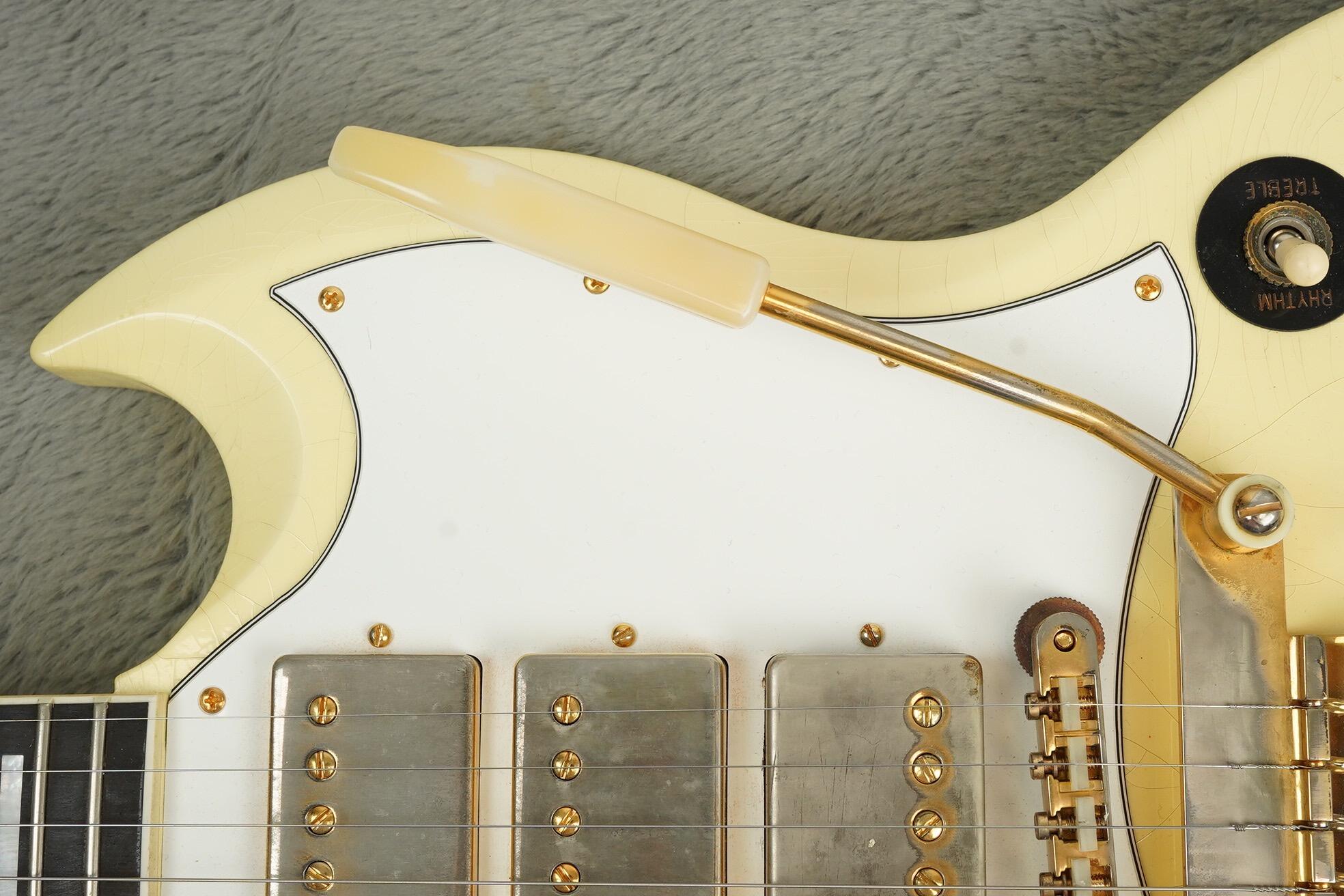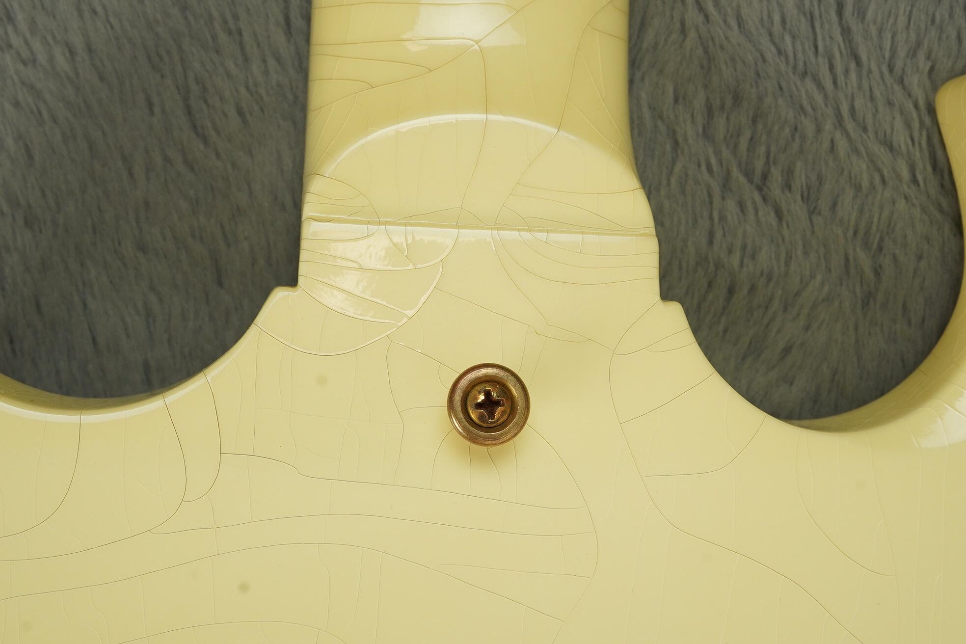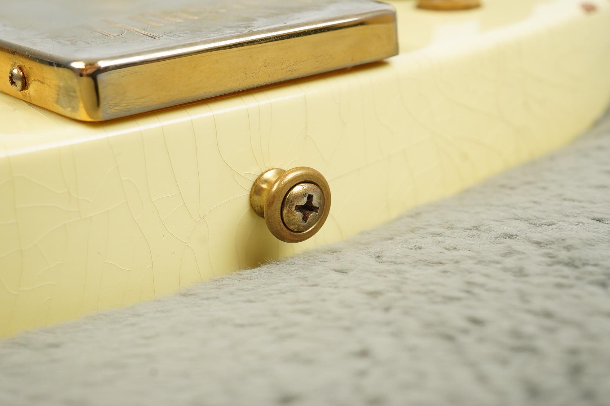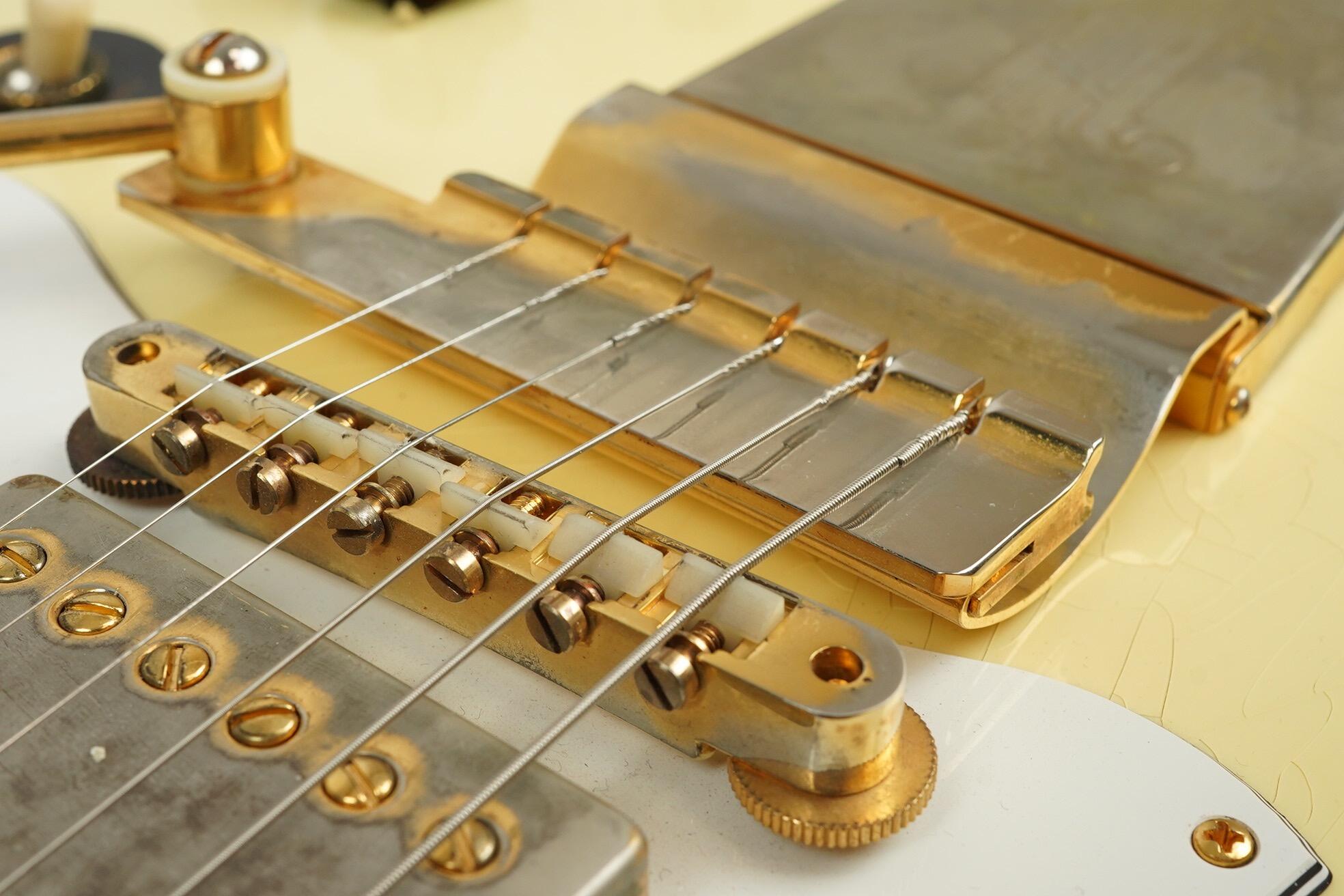 The Murphy Lab-aged Polaris White nitro-cellulose finish is stunning: subtle yellowing, lacquer checking and dings/wear inspired by Hendrix's original. The Mahogany neck has Gibson's 60s SlimTaper profile, long tenon, and a bound ebony fingerboard with Custom block inlays. The bound headstock sports the Custom's split diamond inlay and aged gold Kluson waffleback tuners. All hardware is gold plated and aged including the Long Maestro Vibrola tailpiece, ABR bridge, '68 Custom Humbucker covers, right down the the screws and strap buttons. The attention to detail on this model is incredible.
