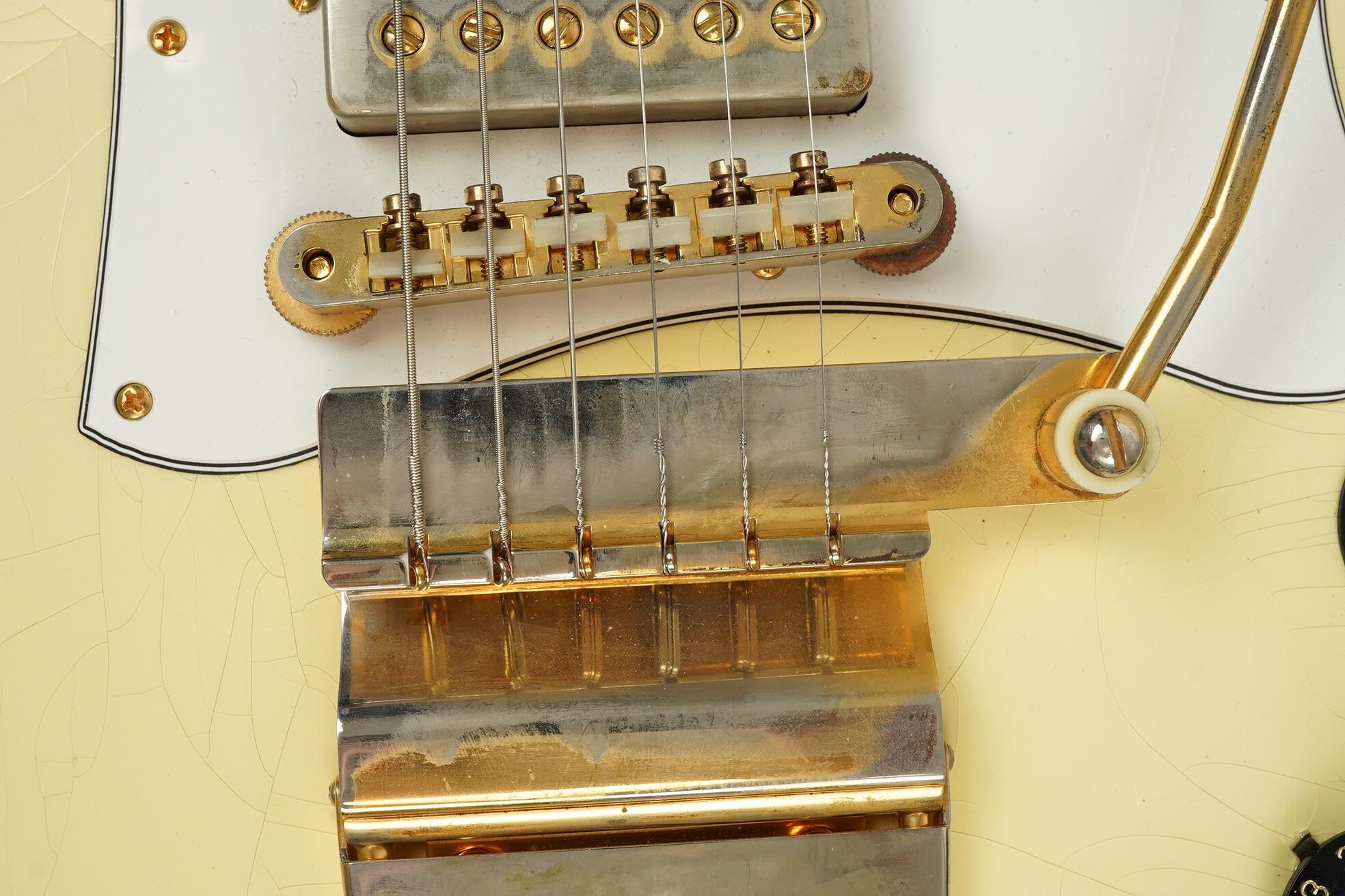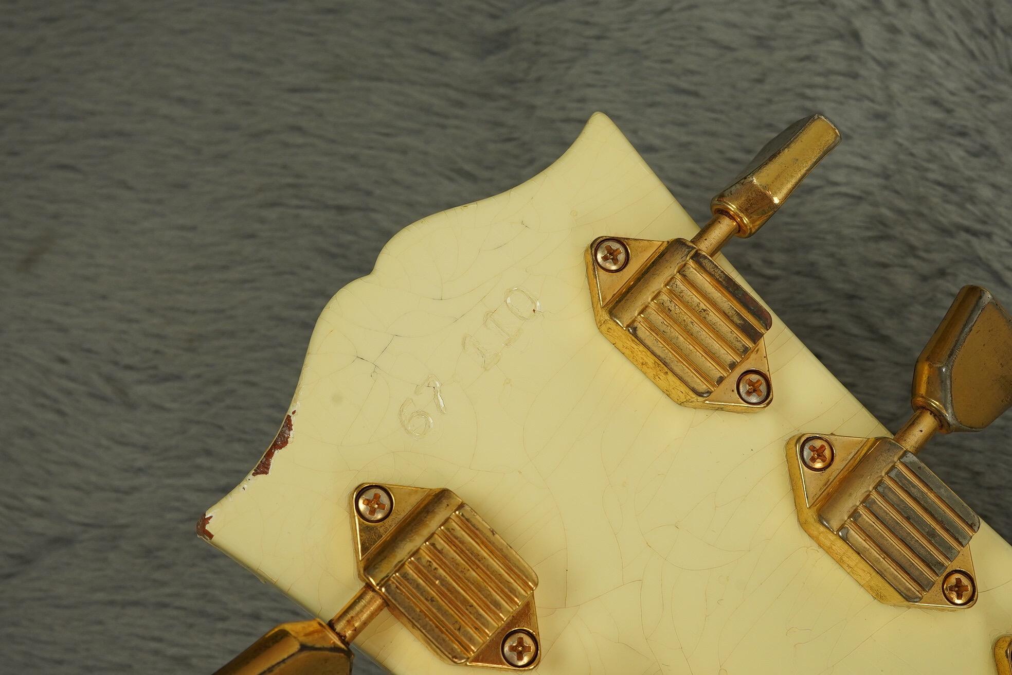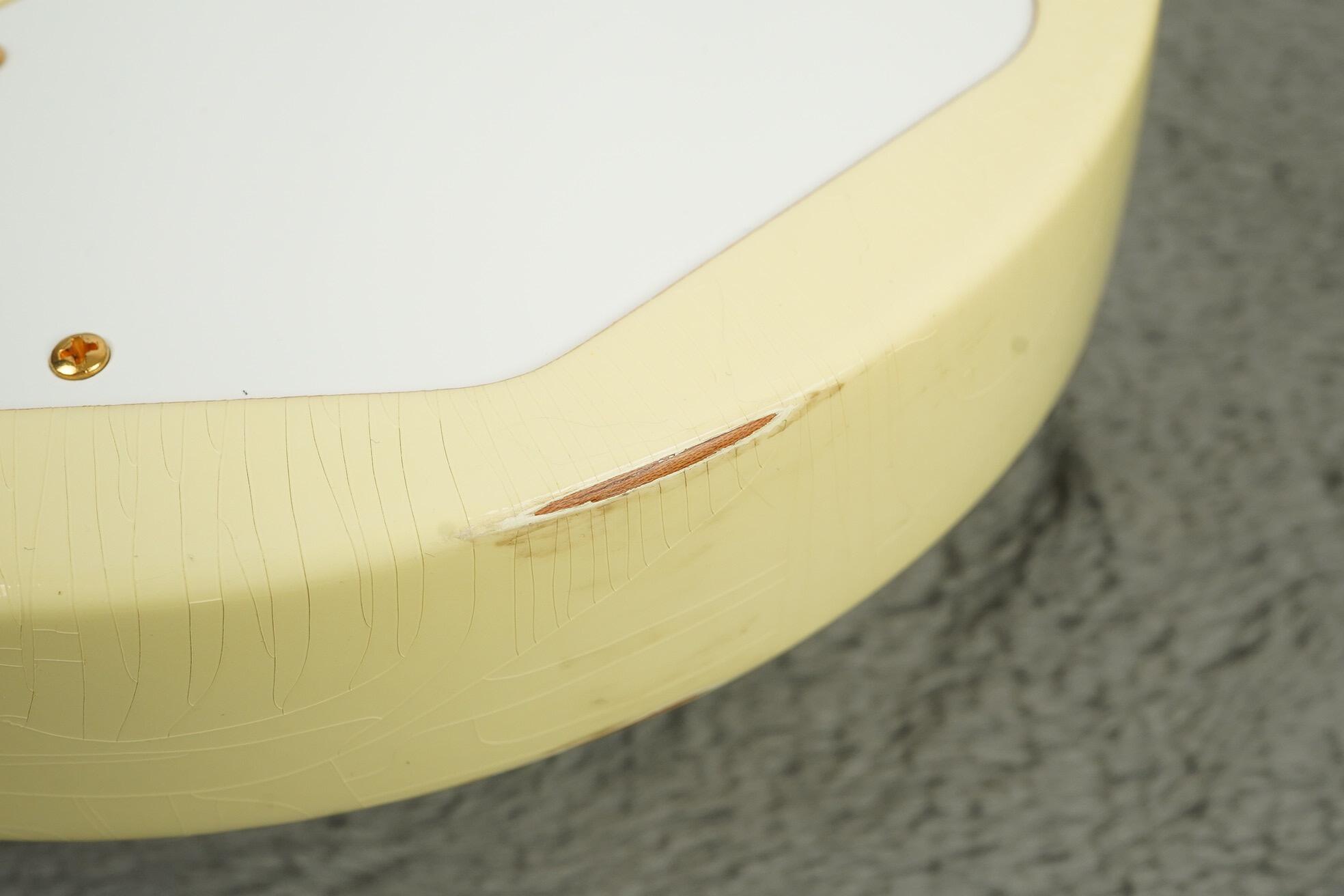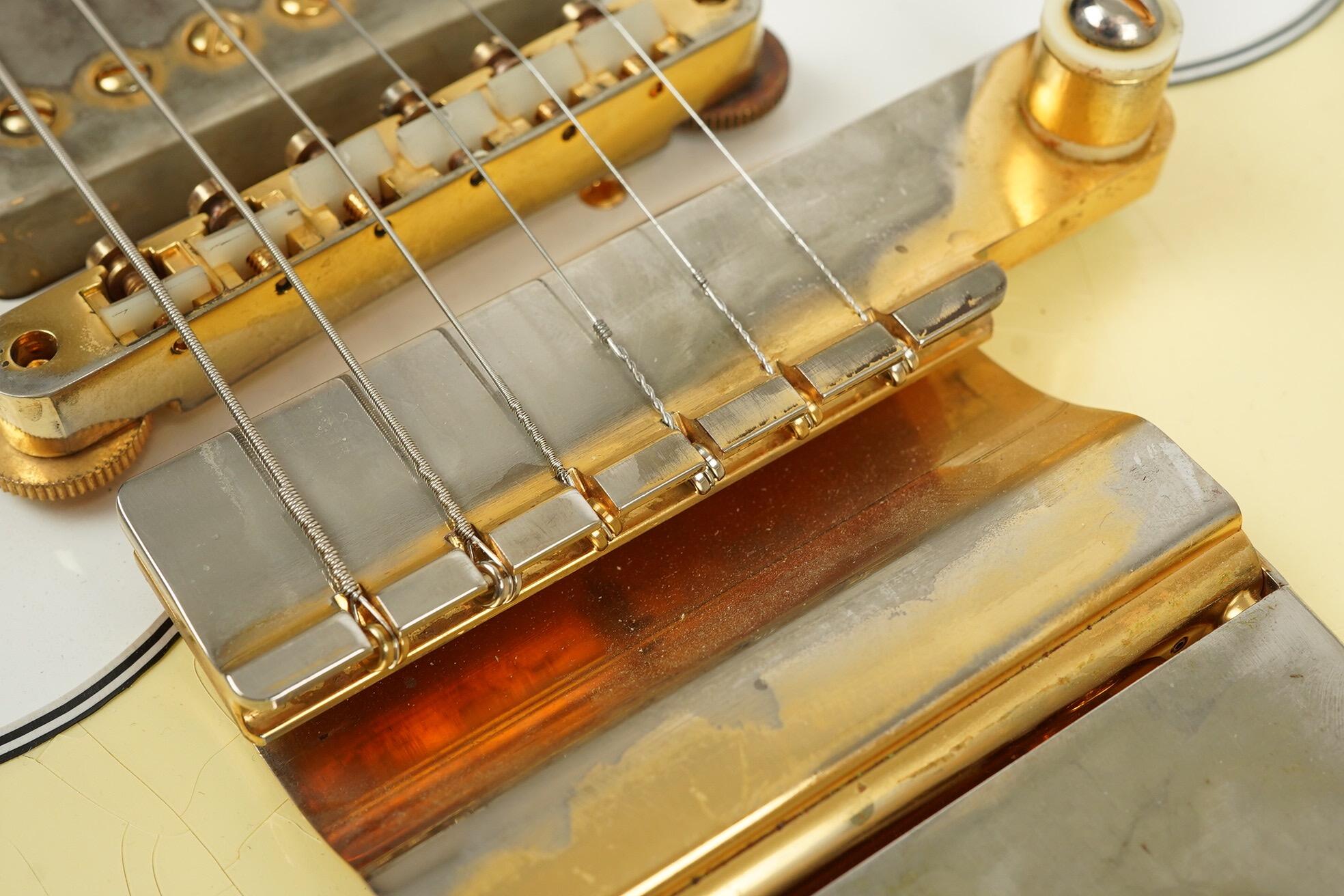 The Murphy Lab-aged Polaris White nitro-cellulose finish is stunning: subtle yellowing, lacquer checking and dings/wear inspired by Hendrix's original. The Mahogany neck has Gibson's 60s SlimTaper profile, long tenon, and a bound ebony fingerboard with Custom block inlays. The bound headstock sports the Custom's split diamond inlay and aged gold Kluson waffleback tuners. All hardware is gold plated and aged including the Long Maestro Vibrola tailpiece, ABR bridge, '68 Custom Humbucker covers, right down the the screws and strap buttons. The attention to detail on this model is incredible.
