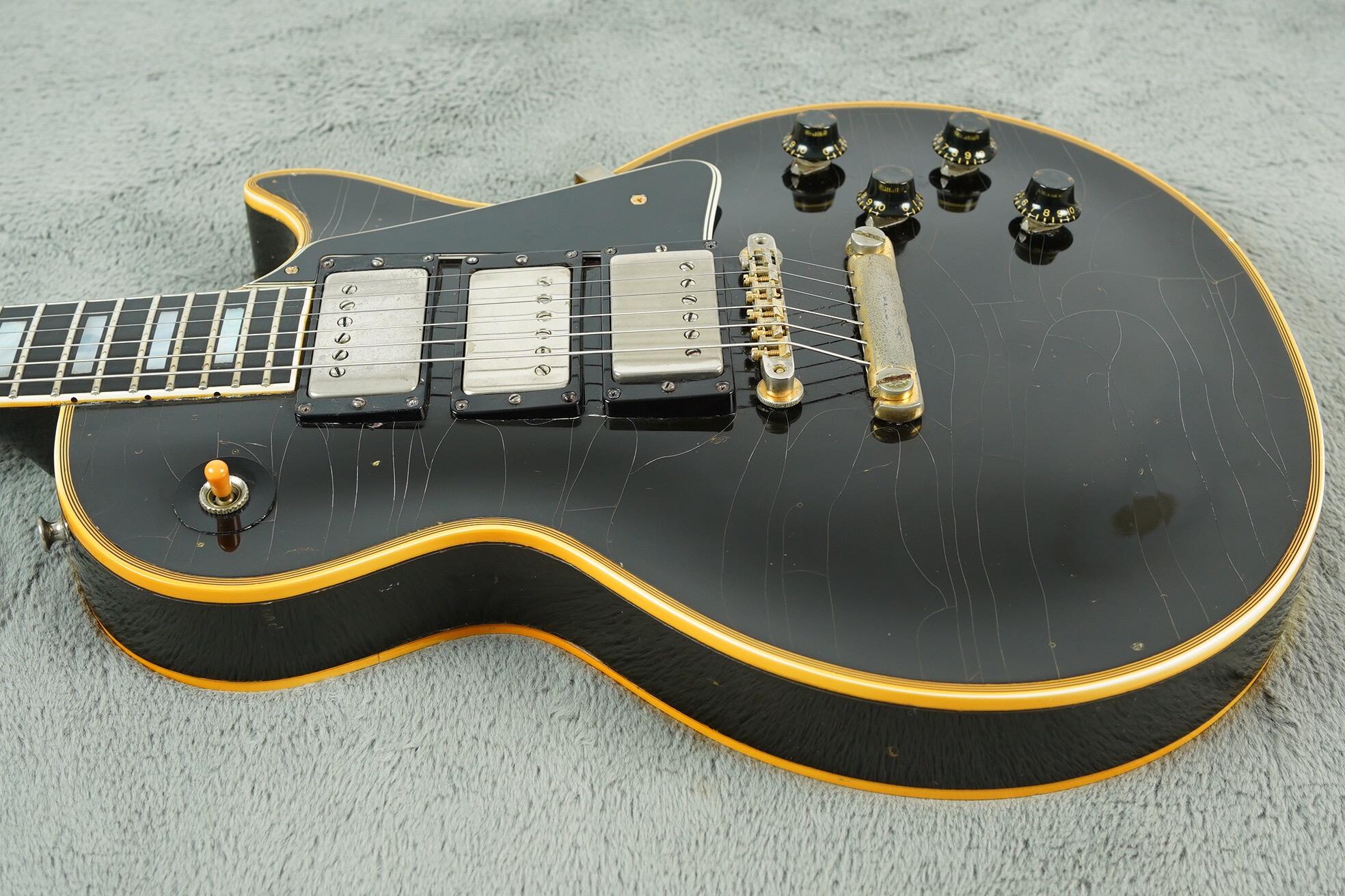 Killer, player grade, 3 pickup 50s Les Paul Custom sporting a nice black refinish. Being 50s you get quality tonewoods and construction that set it apart from any other era - old growth Honduran Mahogany single piece body & neck, long neck tenon and an incredibly comfortable neck profile. Having had a few changes this one is a fraction of the price of an original model... and at the time of writing we have one in stock for over £80k.