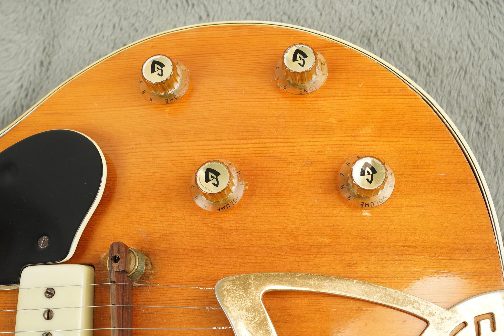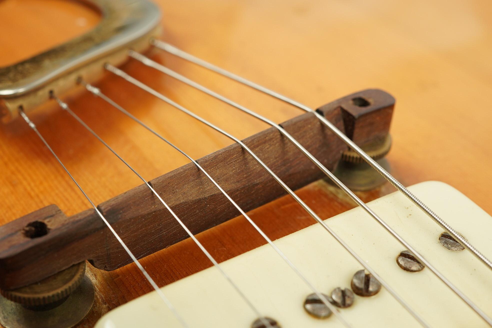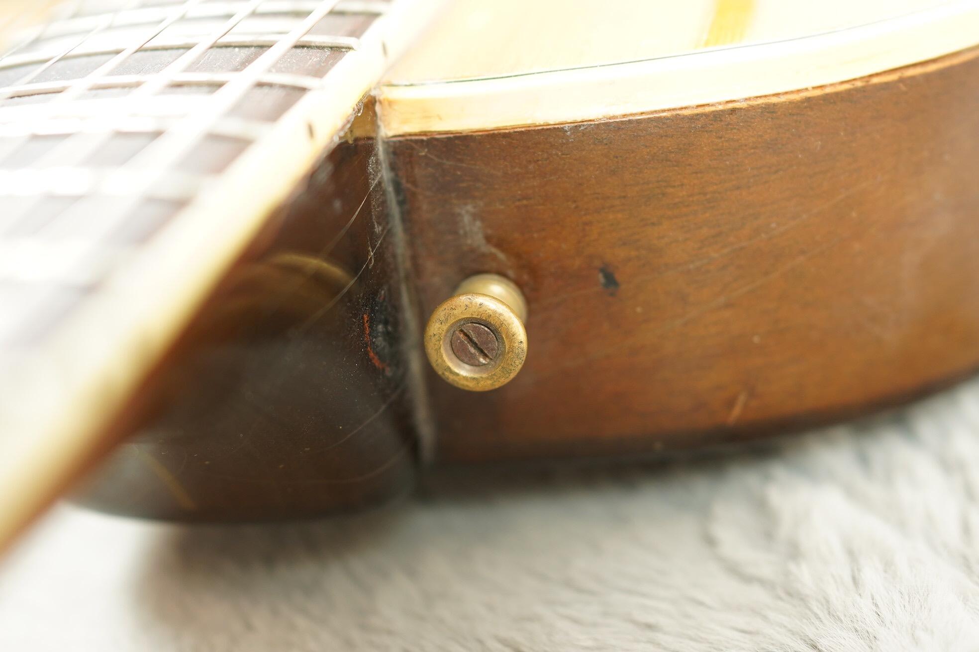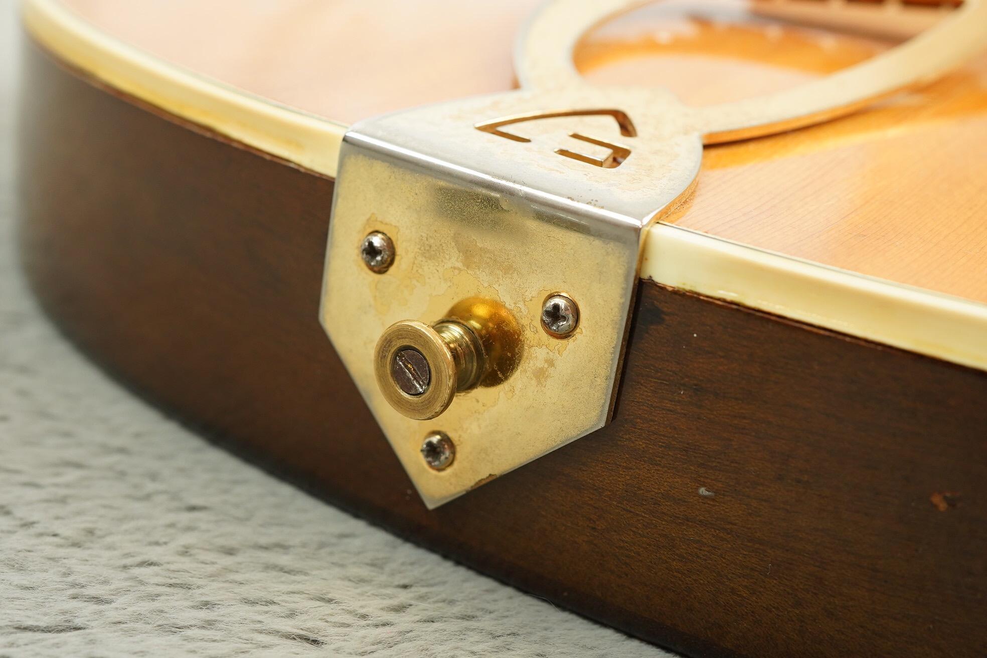 All hardware is original and correct, including the iconic Guild "Harp" tailpiece, gold-plated single-line Kluson tuners (with original buttons), and original knobs and switch. The gold hardware shows some typical tarnishing from age, but it suits the vibe perfectly and hasn’t been polished or tampered with.