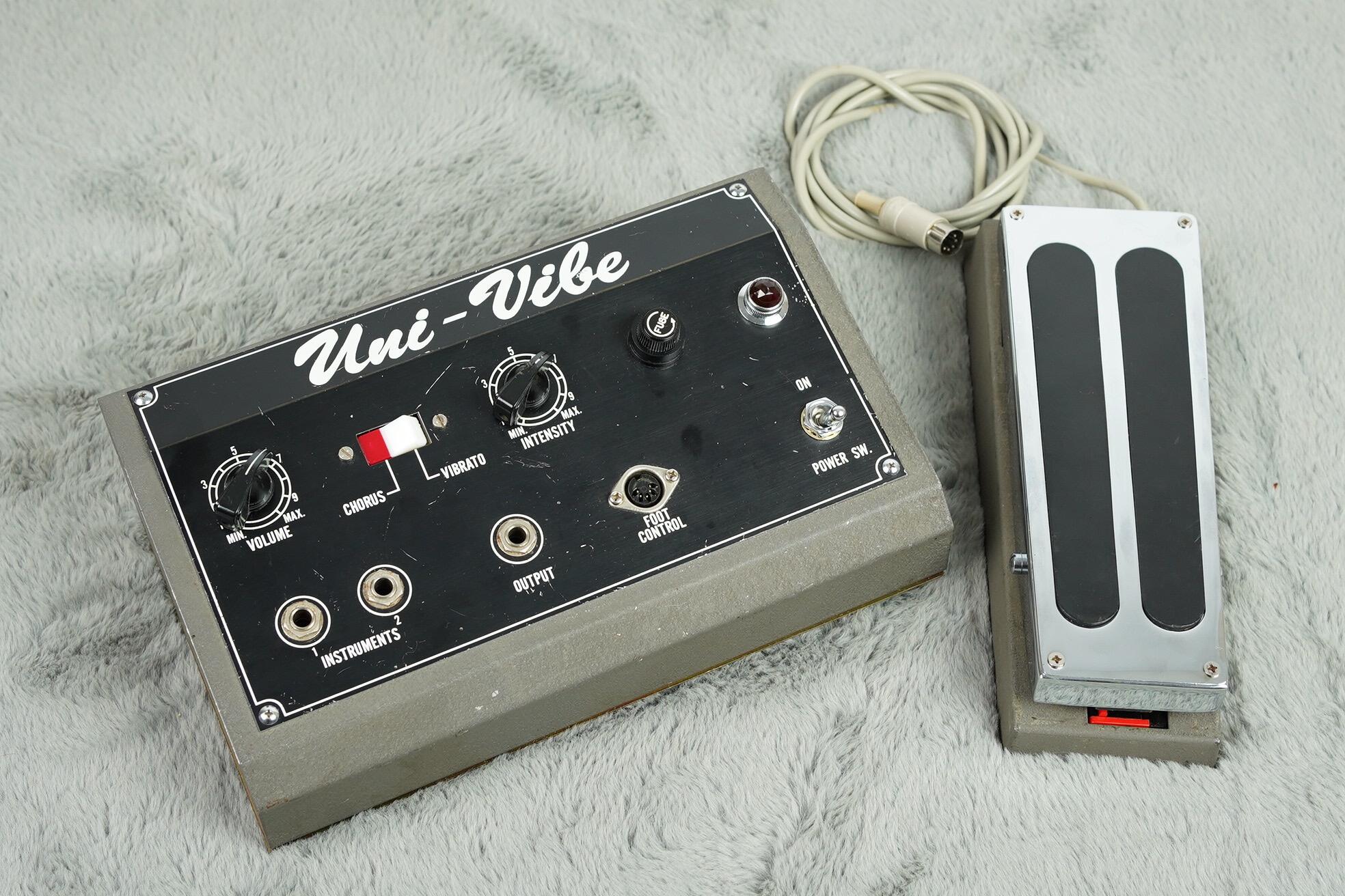 Designed by audio engineer Fumio Mieda to mimic the sound of radio signals from Russia undergoing atmsoheric modulation, the Univibe was first introduced in 1967 as the Honey Vibra Chorus but took on its more familiar form in 1968 following the collapse of Honey and Shin-ei taking up the design. It was also at this point that the external speed control was added.