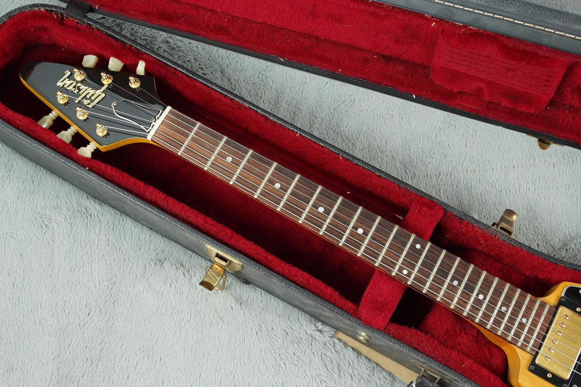 Produced in very low numbers they were a comparatively accurate reissue, right down to the Korina body and neck dot inlayed rosewood fingerboard, gold hardware throughout, 2 PAF humbucker pickups, body-through stringing with Tune-o-matic bridge and V shaped Anchor plate and the original style headstock with 17° angle. The run continued intro 1984 Now 40 years old, the guitar is a fantastic example in wonderful original condition. The finish is clean throughout with the Antique Natural clear coat highlighting the grain perfectly. The headstock is crisp with no marks to the edges, the front displays the raised plastic Gibson logo and the reverse a low C004 ink stamped serial number.