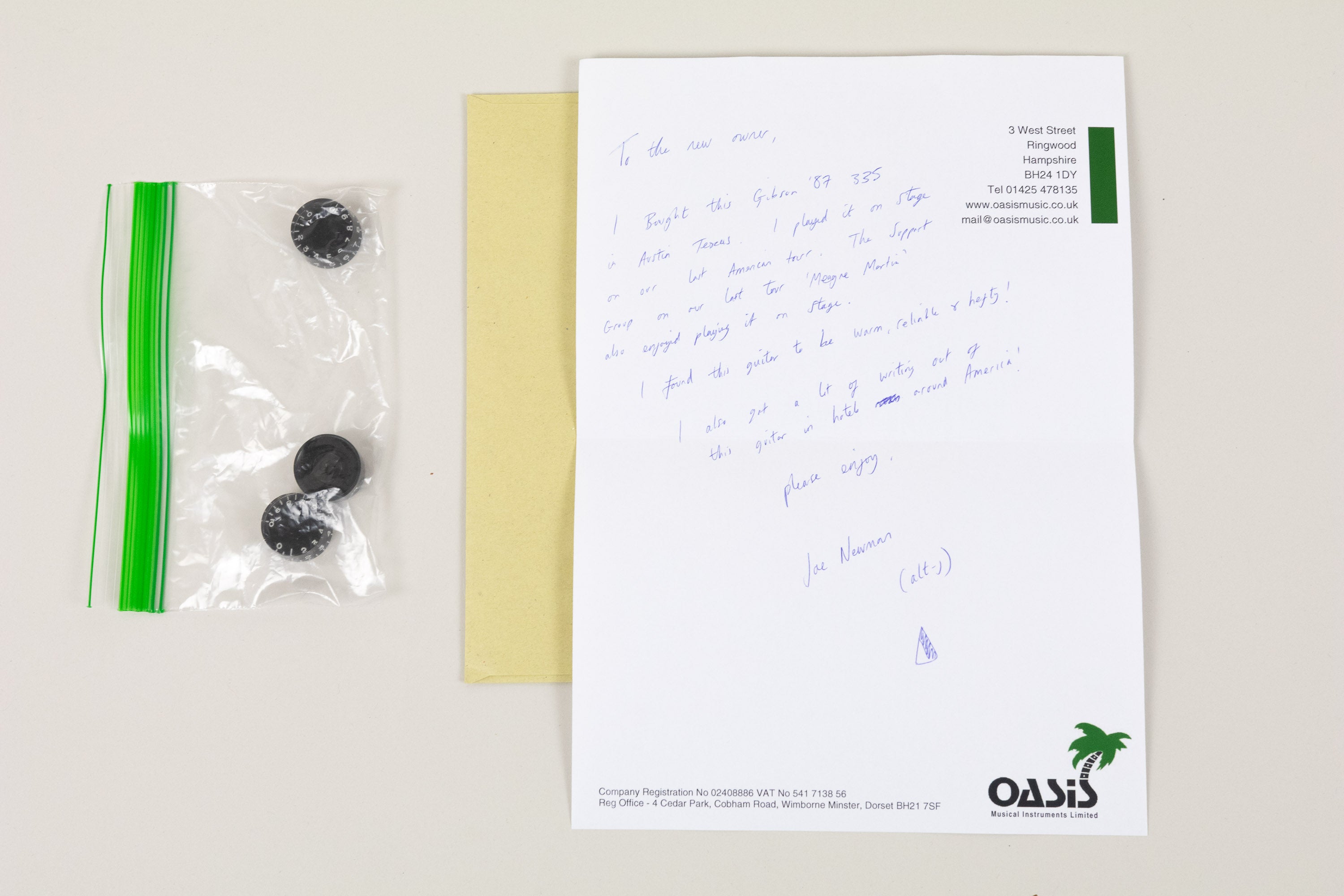 A very cool late ‘80s Gibson ES-335, this 1987 Dot in a beautifully faded Tobacco Sunburst is a particularly clean and attractive example, elevated further by a great bit of artist provenance. Previously owned by Joe Newman of Alt-J, the guitar comes complete with a handwritten note from Newman himself, referencing its use on tour both live and when writing in hotels around the US.