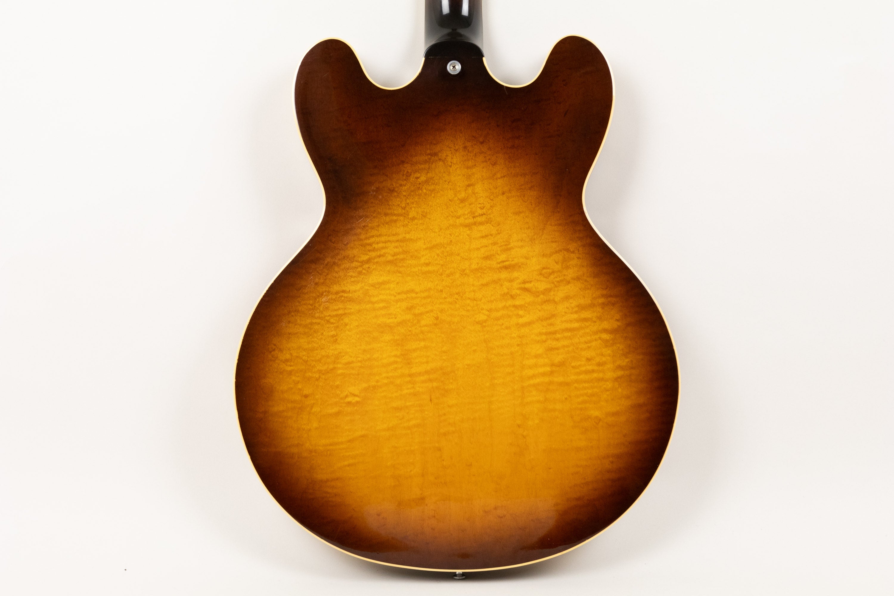 The pair of PAT-stamped humbuckers deliver that classic semi-hollow voice which is warm, open and articulate. It has the correct Nashville bridge, and is fitted with factory Grover tuners for solid stability. The guitar is stamped “SEC” on the back of the headstock, denoting a factory second, though there’s nothing immediately obvious in terms of cosmetic issues - it’s a very tidy instrument in the flesh.