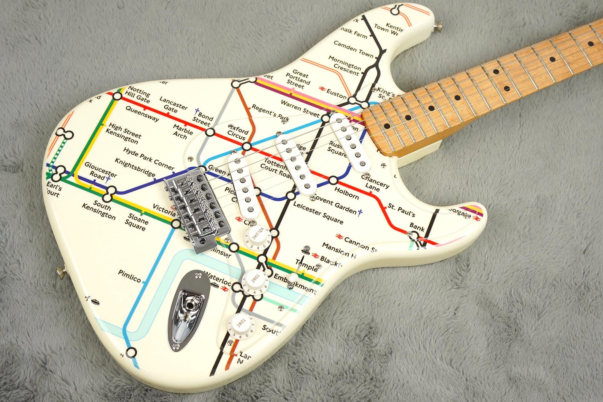 What sets this Strat apart is its intricately designed body art, which features a precise replica of the London Underground Tube map making for a visually stunning and unique playing experience.. :-)