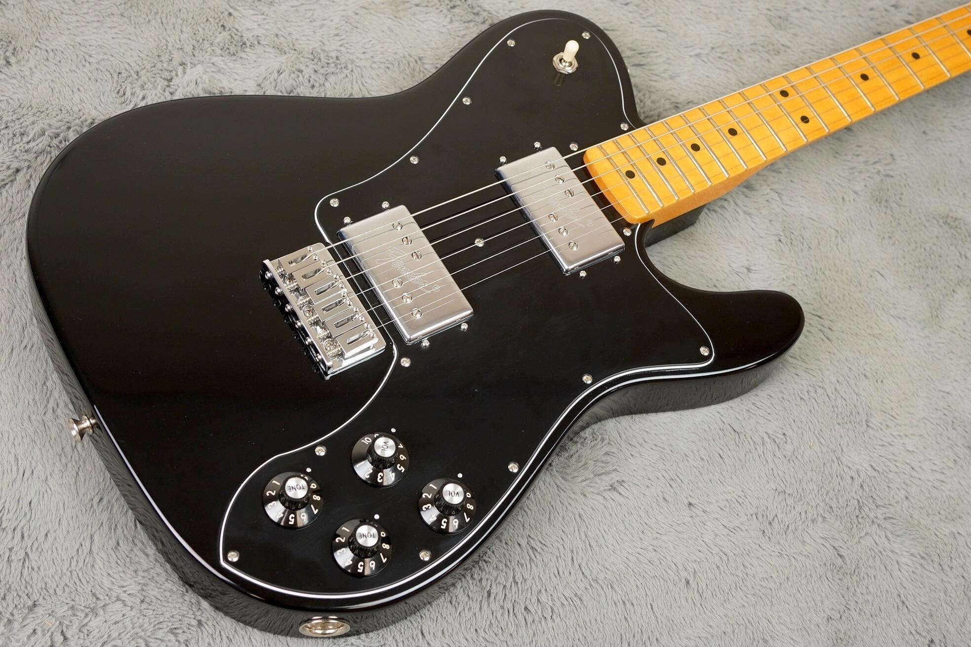 Featuring a '75 "C"-shape hard rock maple neck, the American Vintage II 1975 Telecaster Deluxe plays like a dream with a 9.5" radius maple fingerboard and medium jumbo frets. Characteristic of production in 1975, this Telecaster is outfitted with a convenient "Bullet" style truss rod nut, three-bolt neck plate with Micro-Tilt™ mechanism and offered in Black, Mocha Brown, or 3-Color Sunburst over an alder body. Other features include a 6-Saddle hardtail bridge with stainless steel block saddles and vintage-accurate Tele® Deluxe tuners.